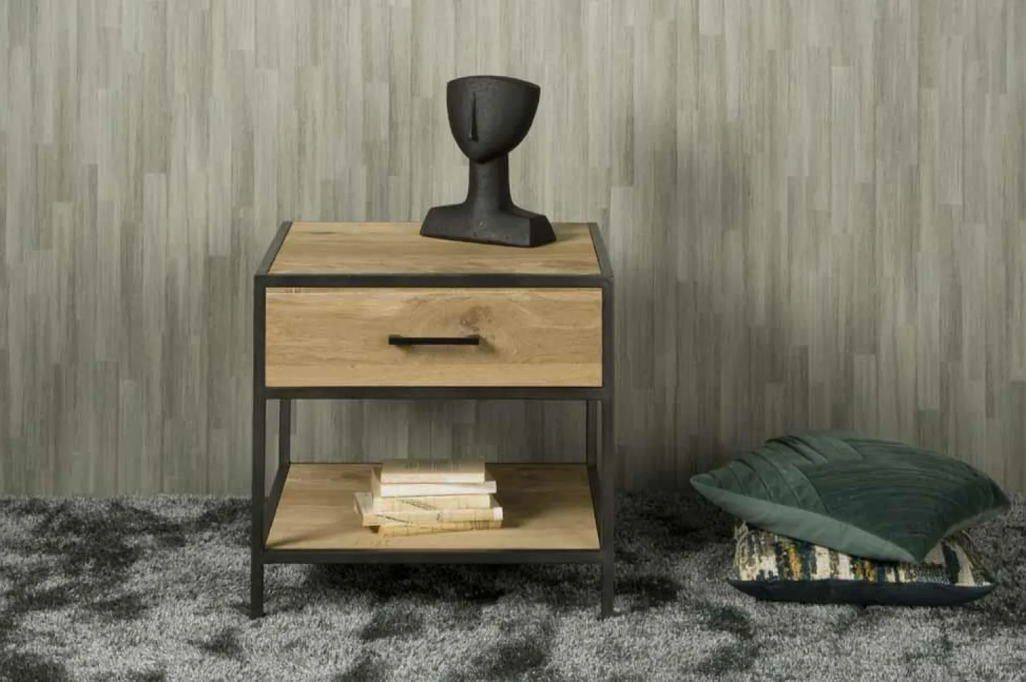 | Materiaal | Eikenfineer en metalen frame afgewerkt in metal gun kleur |