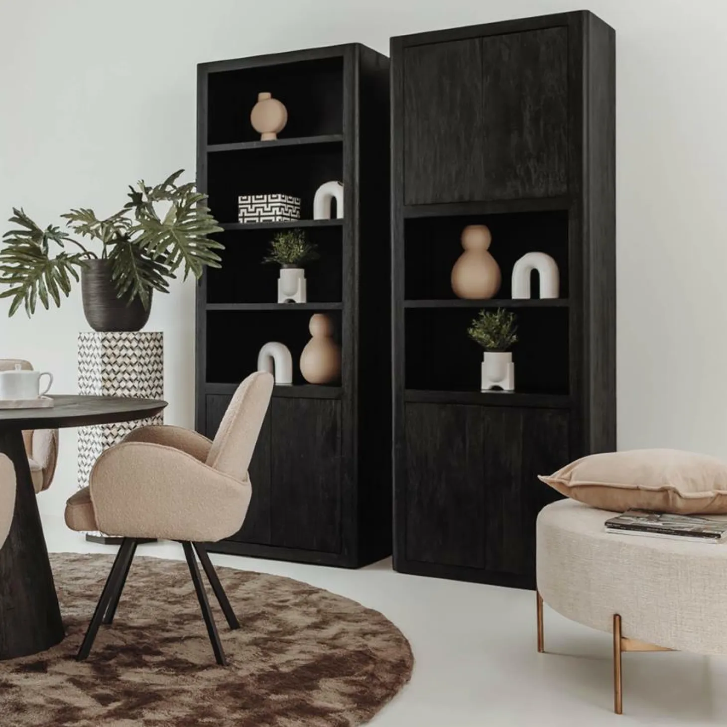 | Materiaal | Massief licht geborsteld mangohout afgewerkt in zwarte kleur |