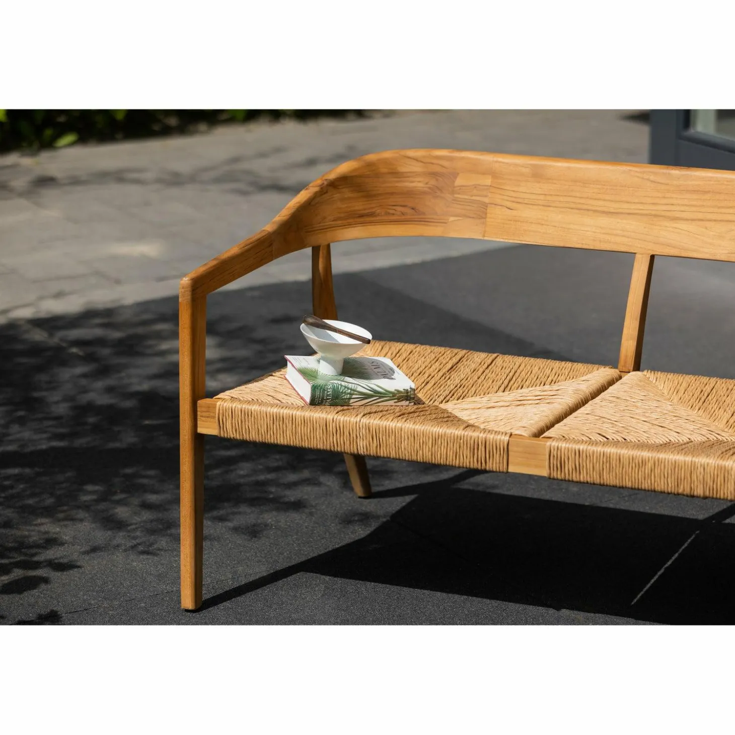 Onderhoud is eenvoudig: behandel het teakhout met een teak sealer om het te beschermen tegen de elementen. Vergeet niet om het bankje te beschermen tegen zware regen en vorst, en indien mogelijk, binnen te overwinteren.