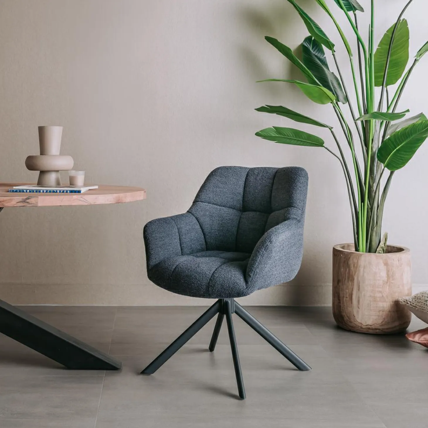 Eetkamerstoel Alba is gemaakt van stof en is 180 graden draaibaar. De zitting en vulling zijn extra dik waardoor de stoel heerlijk comfortabel zit. Verkrijgbaar in de diverse kleuren
