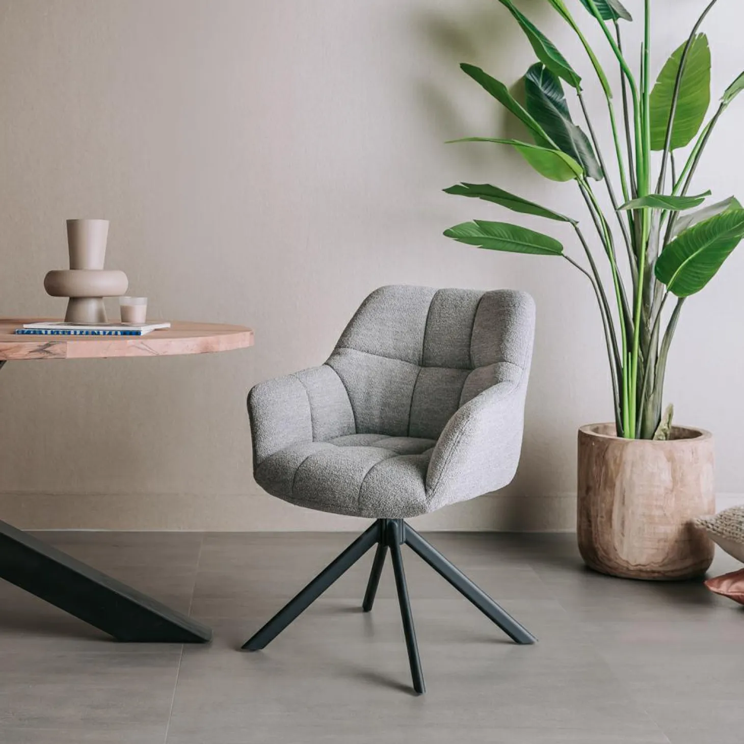 Eetkamerstoel Alba is gemaakt van stof en is 180 graden draaibaar. De zitting en vulling zijn extra dik waardoor de stoel heerlijk comfortabel zit. Verkrijgbaar in de diverse kleuren