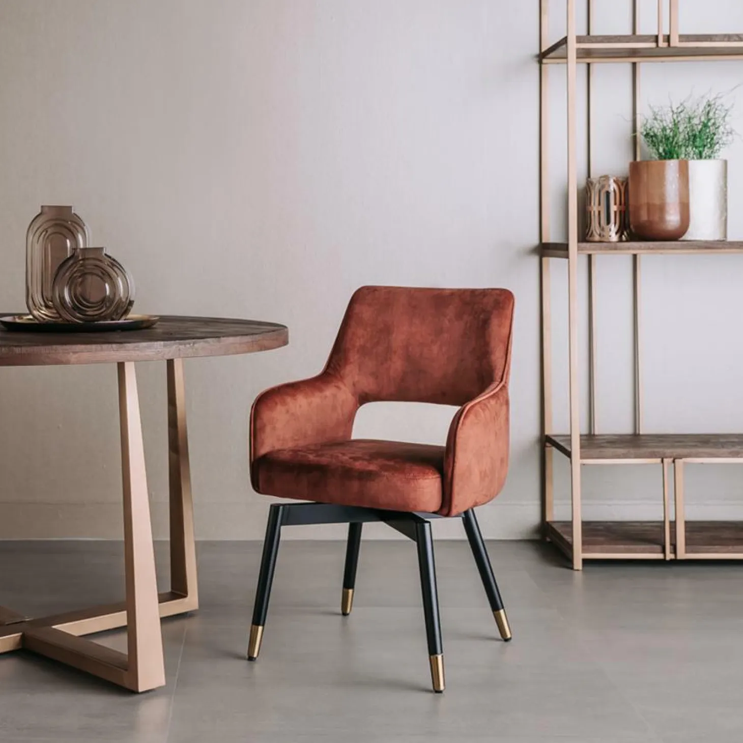| Bijzonderheden | Bij deze stoel krijg je ook een set zwarte poten meegeleverd, zodat je kunt kiezen tussen een gouden of zwarte look. 180 graden draaibaar |