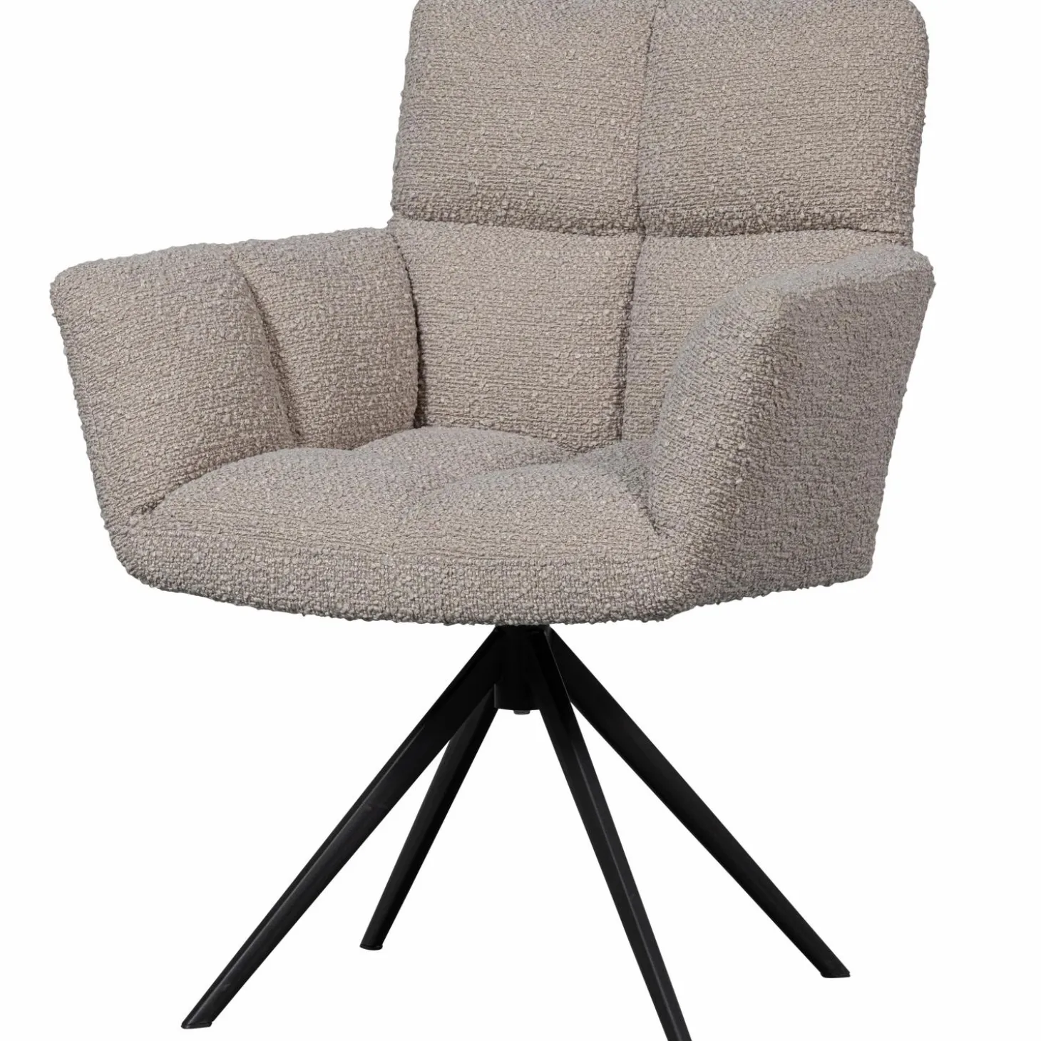 Ontdek de Draaibare Eetkamerstoel Vinny Bouclé met armleuning in de kleur zand, een perfecte mix van comfort en stijl. Deze stoel is jouw nieuwe favoriete plek aan de eettafel, met zijn zachte bouclé bekleding van 100% polyester die uitnodigt tot urenlang tafelen. De Vinny is niet alleen een lust voor het oog, maar ook een genot om in te zitten dankzij de polyurethaan schuimvulling.