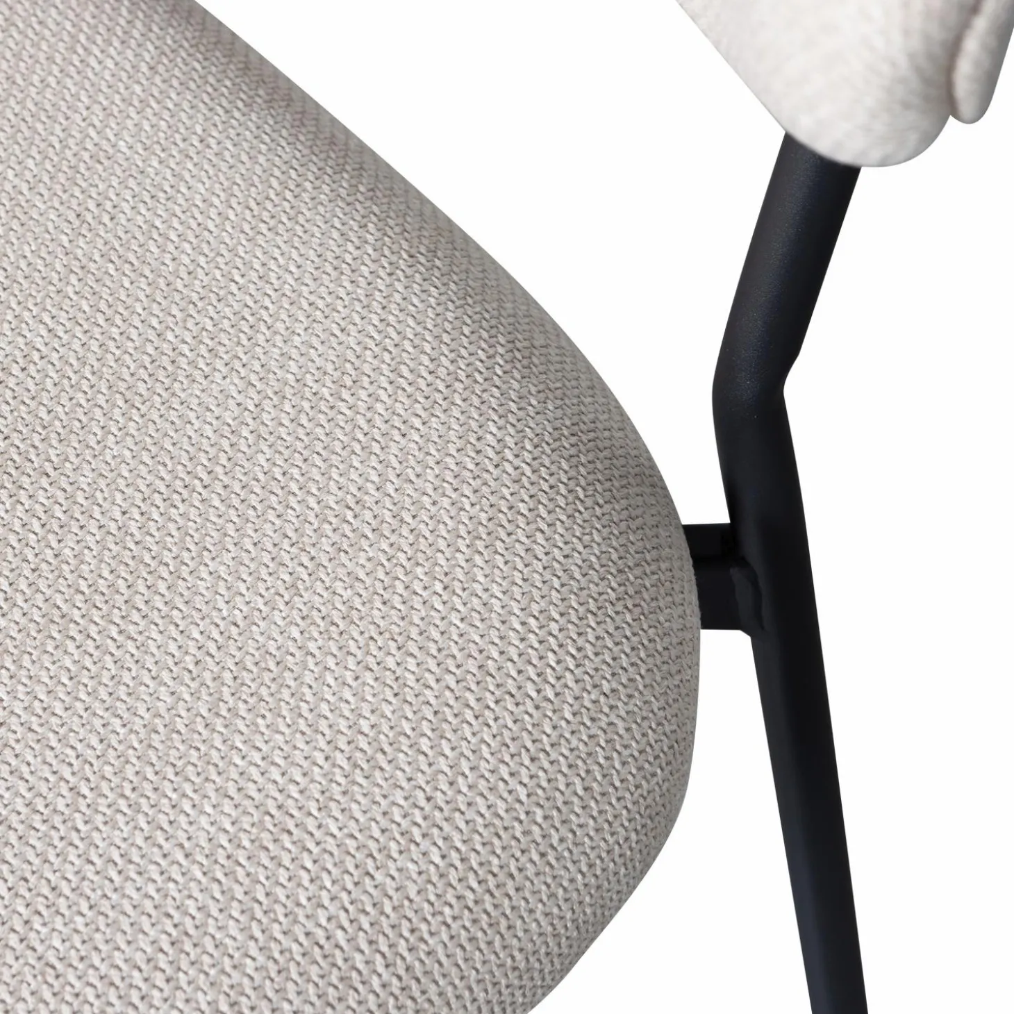 De zitting, bekleed met een hoogwaardige geweven stof van 100% polyester, biedt niet alleen een luxe uitstraling maar ook ultiem comfort. De subtiele kleurschakeringen geven de stof een levendig, driedimensionaal effect dat je interieur tot leven brengt. Het slanke, matzwarte metalen onderstel zorgt voor een stevige basis en een eigentijdse touch.