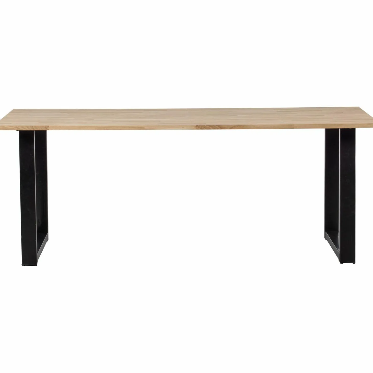 Het massieve eikenhouten blad, met een dikte van 2,4 cm, straalt natuurlijke charme uit en is voorzien van een vingerlas houtverbinding voor extra stevigheid. De matzwarte U-poot van 72x79x10 cm geeft de tafel een moderne touch en zorgt voor een stabiele basis. Met een draagkracht van 150 kg hoef je je geen zorgen te maken over zware gerechten of decoraties.