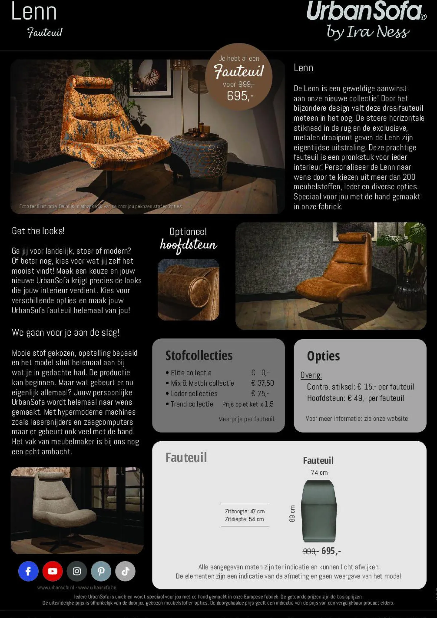 Fauteuil Lenn van UrbanSofa heeft de volgende opties: