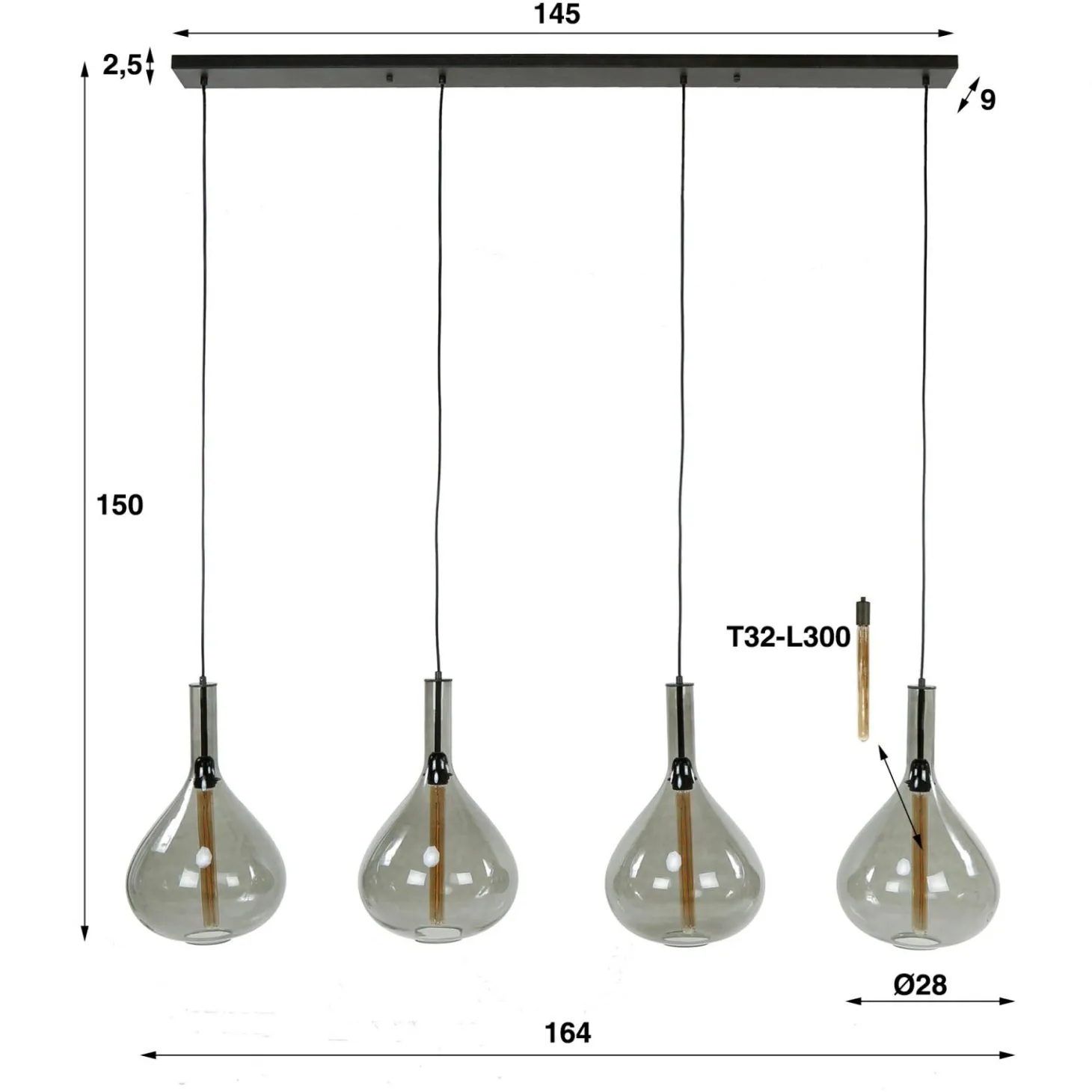 Loft24 Hanglamp 4L Drop Smoke Glass