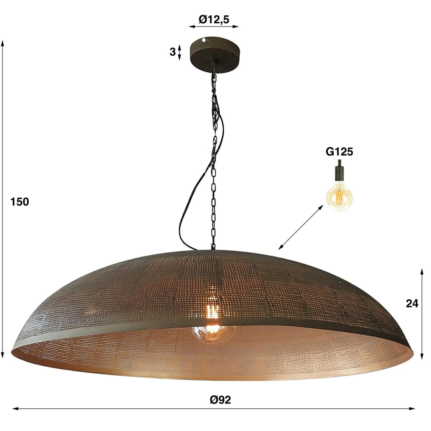 De Hanglamp Cosmic, gemaakt van prachtig bronskleurig metaal, is niet zomaar een lichtbron – het is een statementstuk dat je interieur transformeert en elke ruimte in een oogwenk verheft. Deze hanglamp belichaamt tijdloze elegantie en creëert een warme en uitnodigende sfeer in elke kamer. De lamp is tot 150 cm in hoogte verstelbaar.Deze hanglamp ‘cosmic’ is uitgevoerd in metaal met een brons antiek finish. Door de handgewerkte gaatjes komt er voldoende licht vrij en wordt de ruimte mooi gedoseerd verlicht. Deze lamp geeft ieder huis een beetje meer sfeer! De lamp is tot 150 cm in hoogte verstelbaar. Er wordt aanbevolen LED lichtbron (8467) te gebruiken.
