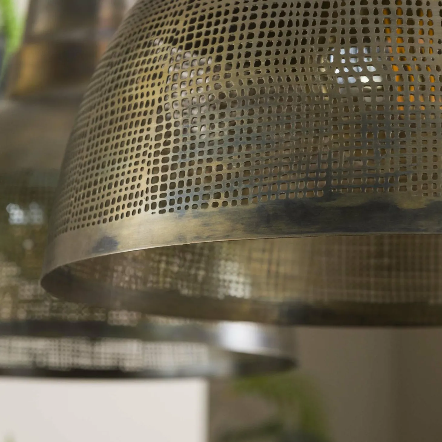 Deze hanglamp ‘screen’ is uitgevoerd in metaal met een brons antiek finish. Door de handgewerkte gaatjes komt er voldoende licht vrij en wordt de ruimte mooi gedoseerd verlicht. Deze lamp geeft ieder huis een beetje meer sfeer! De kappen zijn afzonderlijk van elkaar tot 150 cm in hoogte verstelbaar. Er wordt aanbevolen LED lichtbron (8467) te gebruiken.