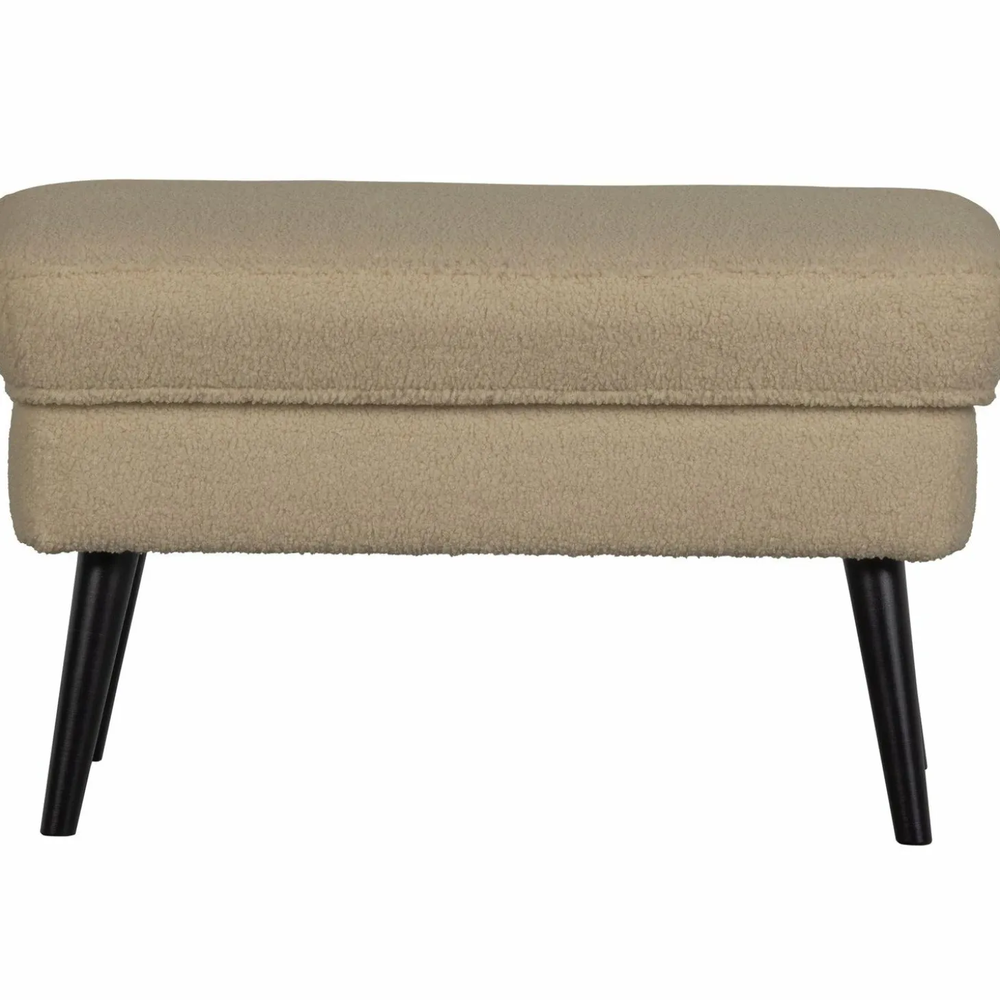 Gemaakt van 100% polyester, biedt de teddy stof niet alleen een luxe uitstraling, maar ook duurzaamheid voor intensief gebruik. De stevige constructie van multiplex, zachthout, hardhout en spaanplaat zorgt voor een betrouwbare basis, terwijl de mat zwarte beukenhouten poten een elegante finishing touch geven.