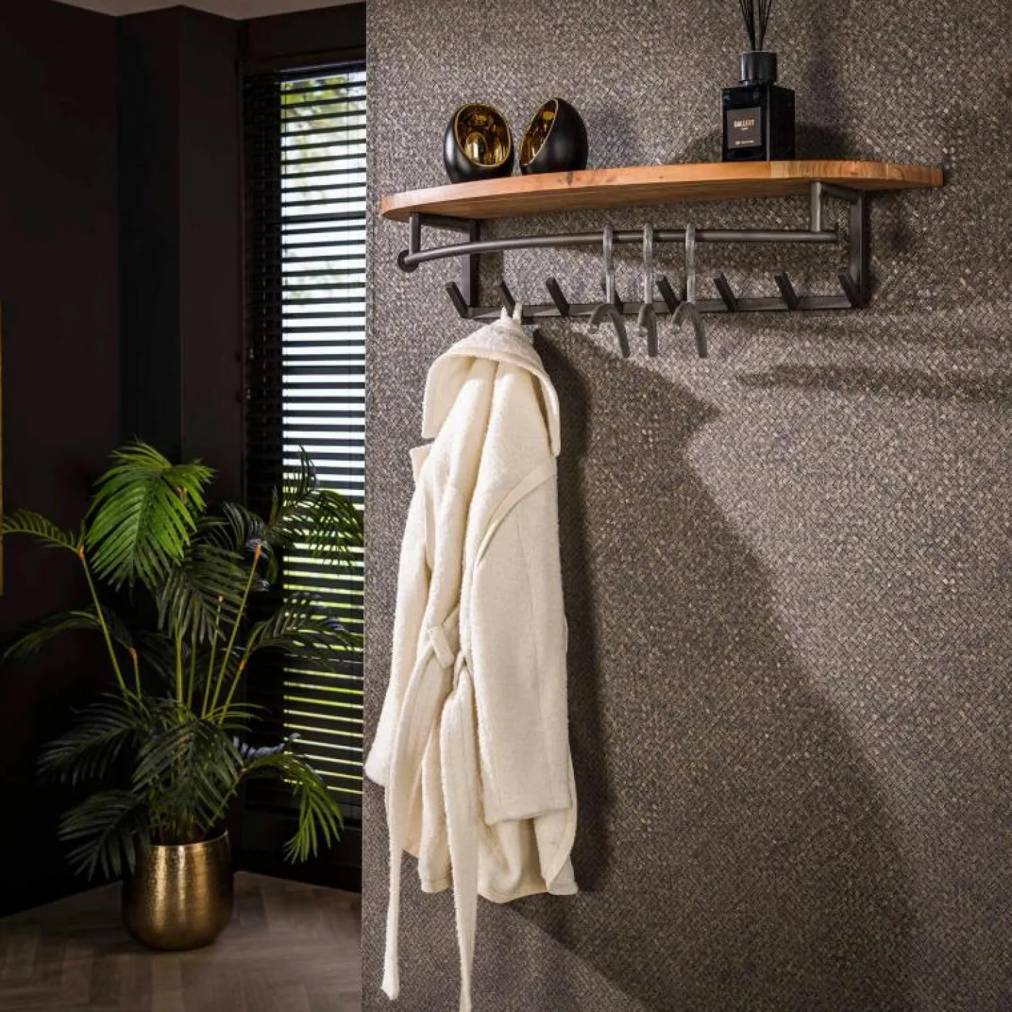 Deze kapstok ‘round’ is uitgevoerd in massief acaciahout en beschikt over 8 haken, een roede en een prachtige afgeronde hoedenplank. Deze kapstok is eigentijds en zo stijlvol door haar prachtige ronde afwerking. De kapstok wordt door middel van 2 schroefgaten aan de wand gemonteerd.