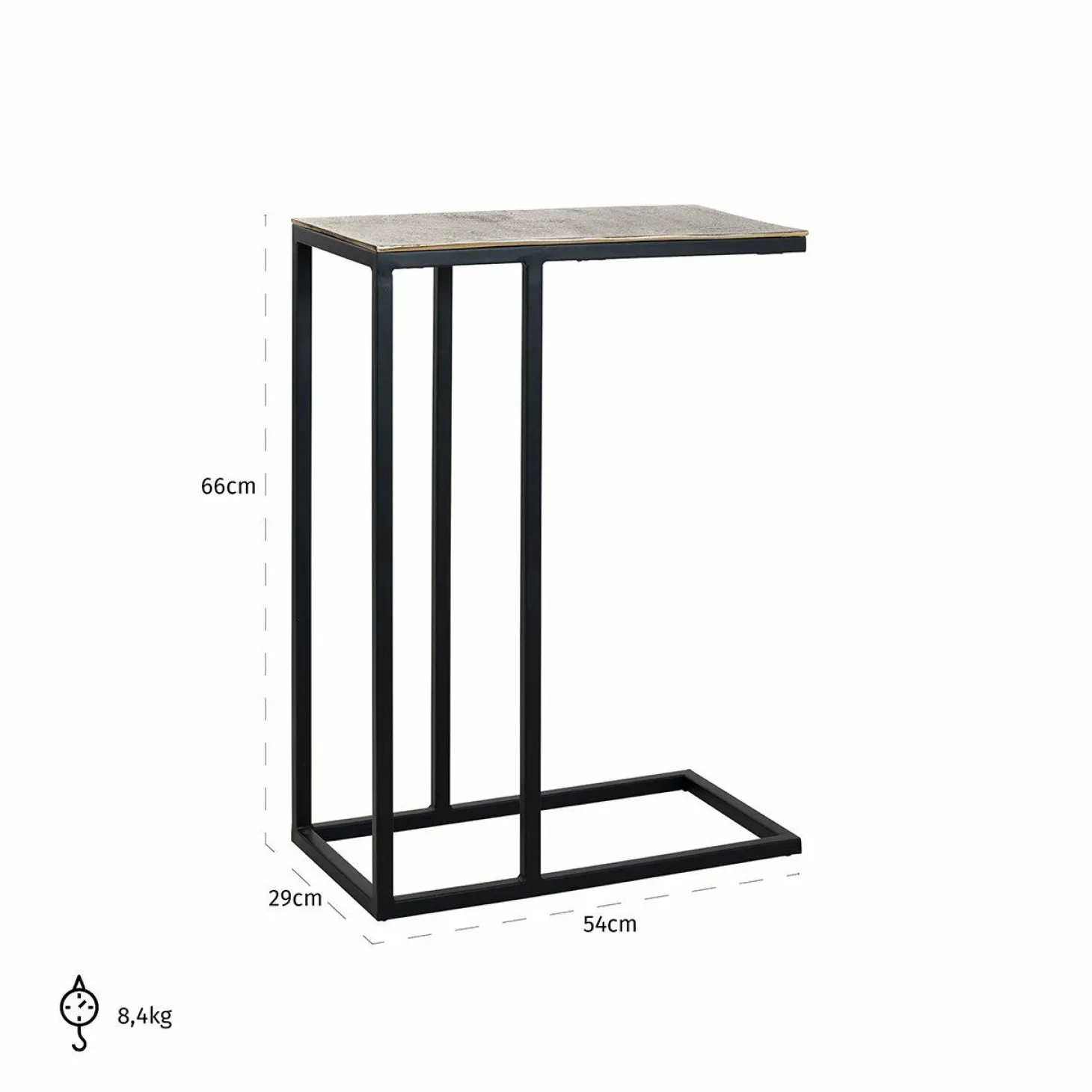 | Materiaal | blad van aluminium in de kleur Champagne-Gold, Zwart gecoat stalen frame |