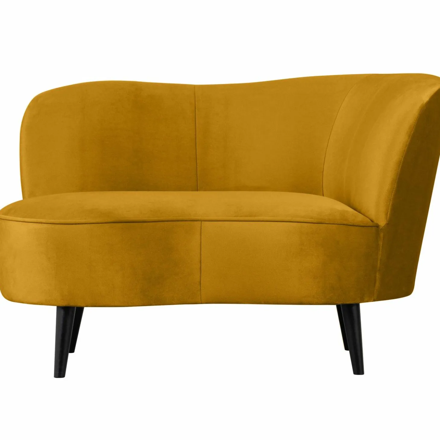 Lounge Fauteuil Sara – Oker (rechts) is jouw nieuwe favoriete plek om te ontspannen. Stel je voor: je komt thuis na een lange dag, en daar staat ze, in al haar okergele glorie, klaar om je te verwelkomen. Deze fauteuil is niet zomaar een stoel; het is een statement. Met haar zachte velvet stof (100% polyester) en stevige houten poten, biedt ze niet alleen comfort, maar ook een vleugje luxe aan je interieur.
