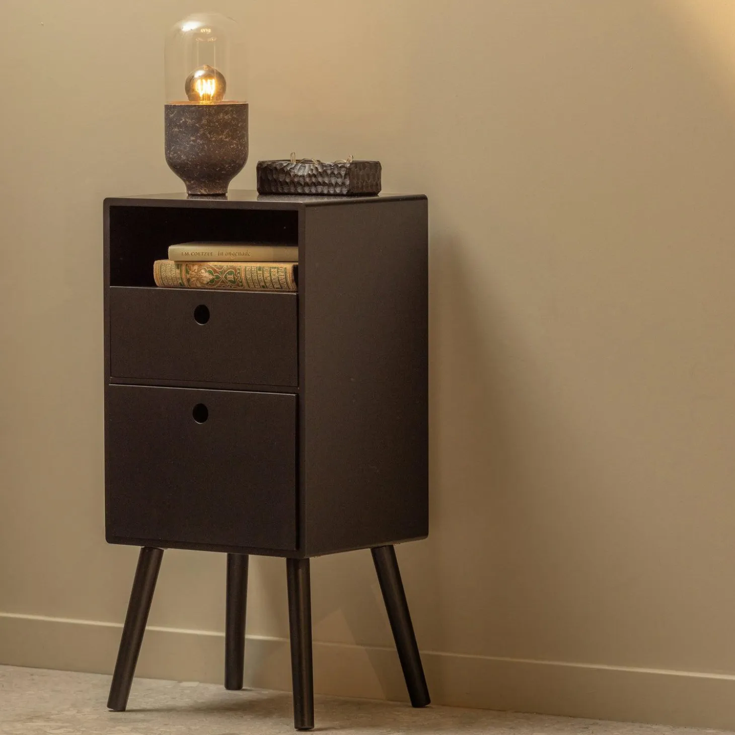 Of je nu een modern, industrieel of klassiek interieur hebt, het Nachtkastje Ozzy voegt een vleugje elegantie toe aan elke ruimte. Klaar om jouw slaapkamer een stijlvolle upgrade te geven? Laat Ozzy je verrassen met zijn charme en functionaliteit!