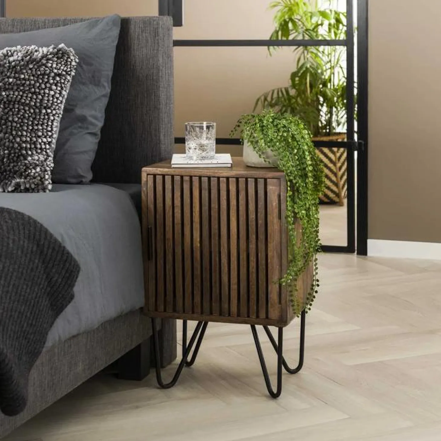 Dit nachtkastje ‘barrel’ is uitgevoerd in mango hout met een metalen frame afgewerkt in zwart poedercoat. De afgevlakte hoeken geven een heel trendy beeld. Een echte musthave! Dit nachtkastje behoort tot de ‘barrel’ serie.
