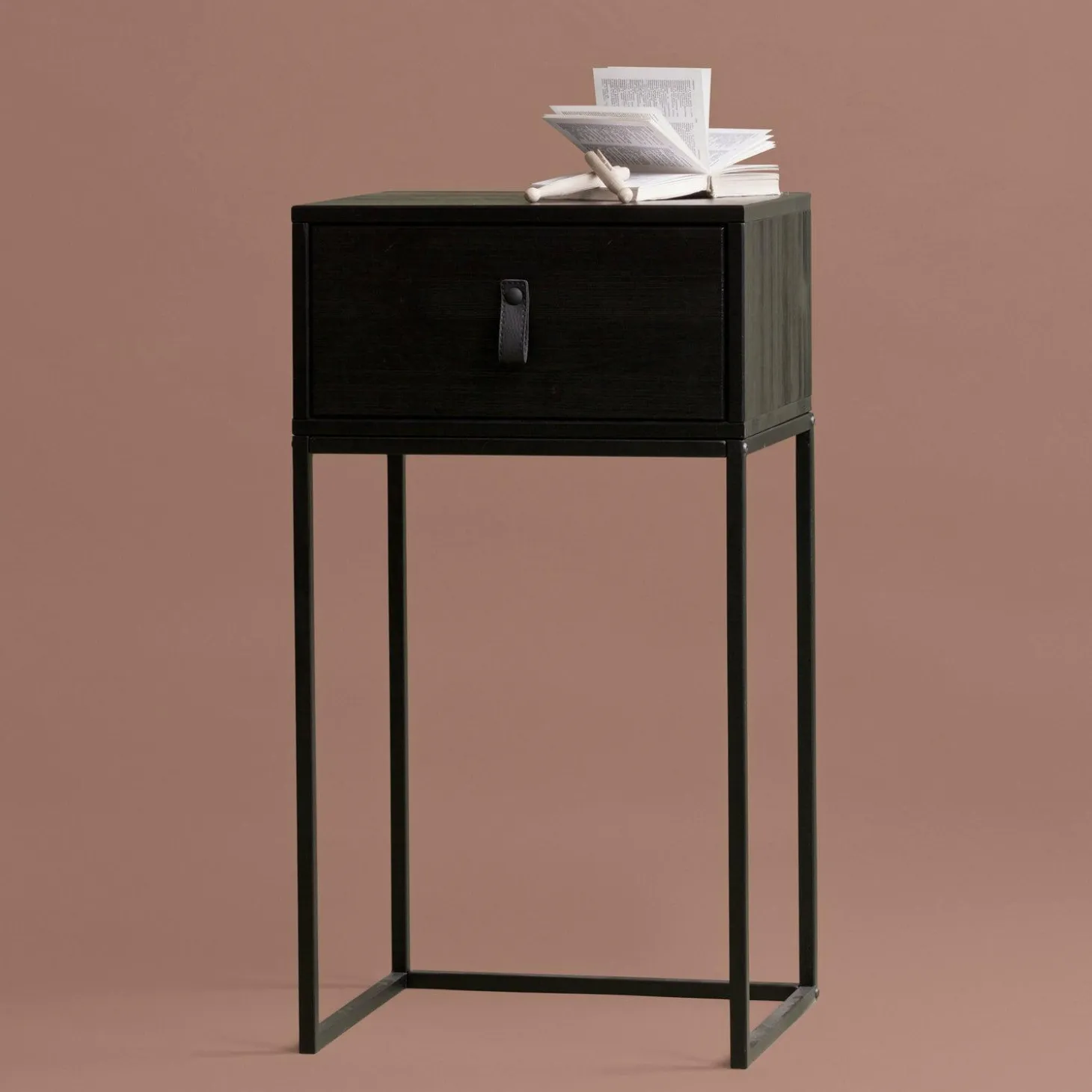 Ontsnap aan de dagelijkse drukte en creëer een oase van rust in je slaapkamer met het Zola nachtkastje in stijlvol zwart. Dit meesterwerk van WOOOD combineert de robuuste charme van metaal met de warme uitstraling van grenen hout, beide afgewerkt in een elegante zwarte tint. Het resultaat? Een tijdloos design dat moeiteloos in elke slaapkamer past.