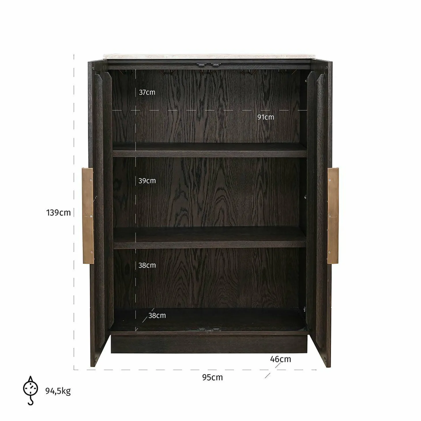 | Materiaal | Eiken, eikenfineer en travertin |
