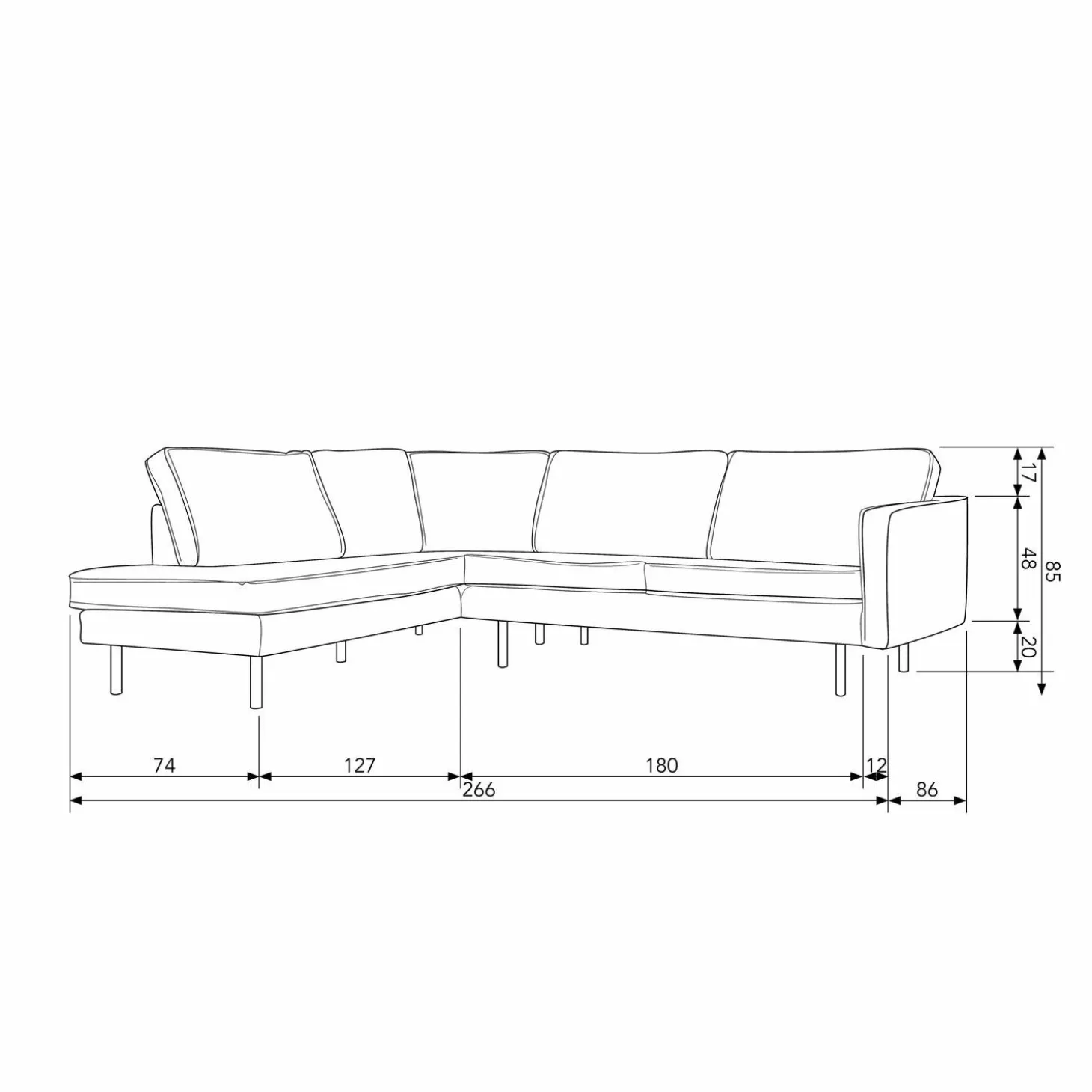 Praktisch in onderhoud, kleine vlekken zijn eenvoudig te verwijderen en de bank wordt geleverd in twee pakketten met een duidelijke montagehandleiding. Vergeet niet viltglijders te plaatsen om je vloer te beschermen.