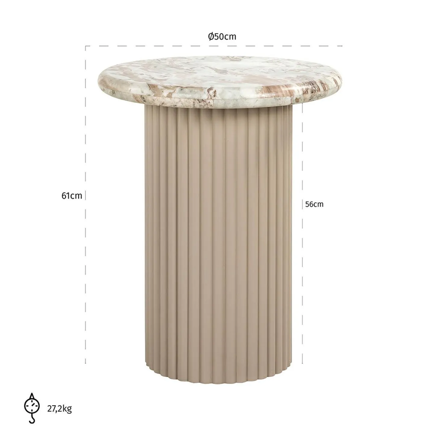 | Materiaal | Blad van marmer met MDF onderstel |
