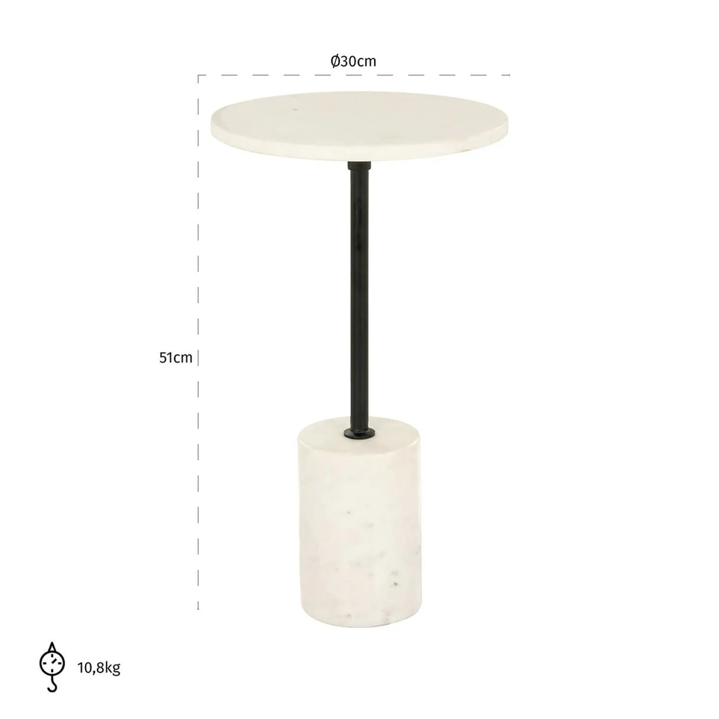| Materiaal | Marmeren blad en voet met ijzeren tussenstuk |