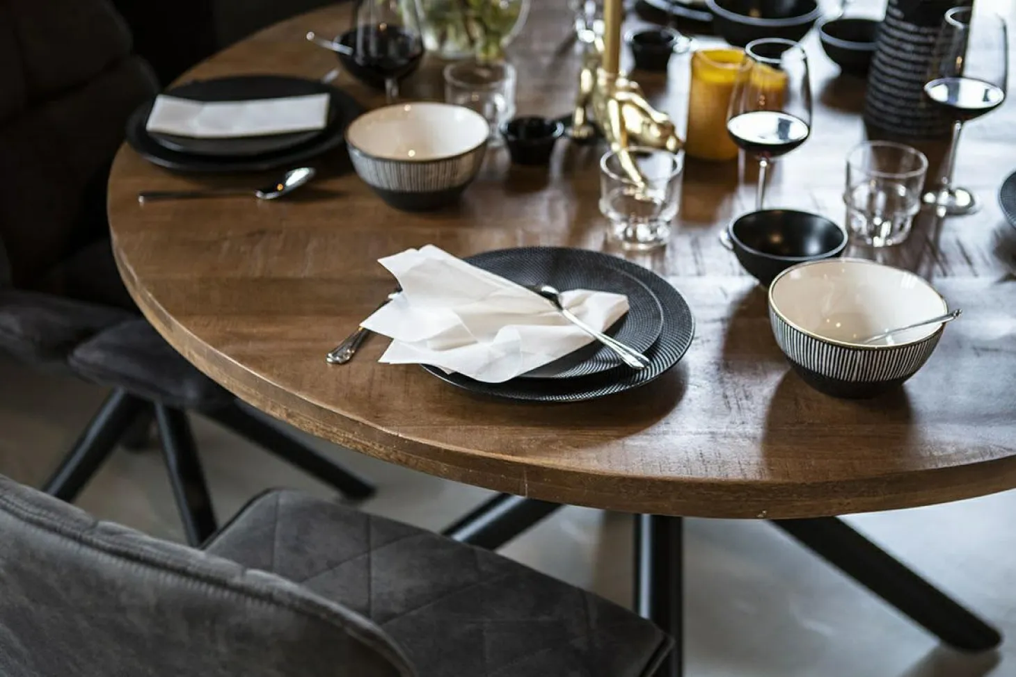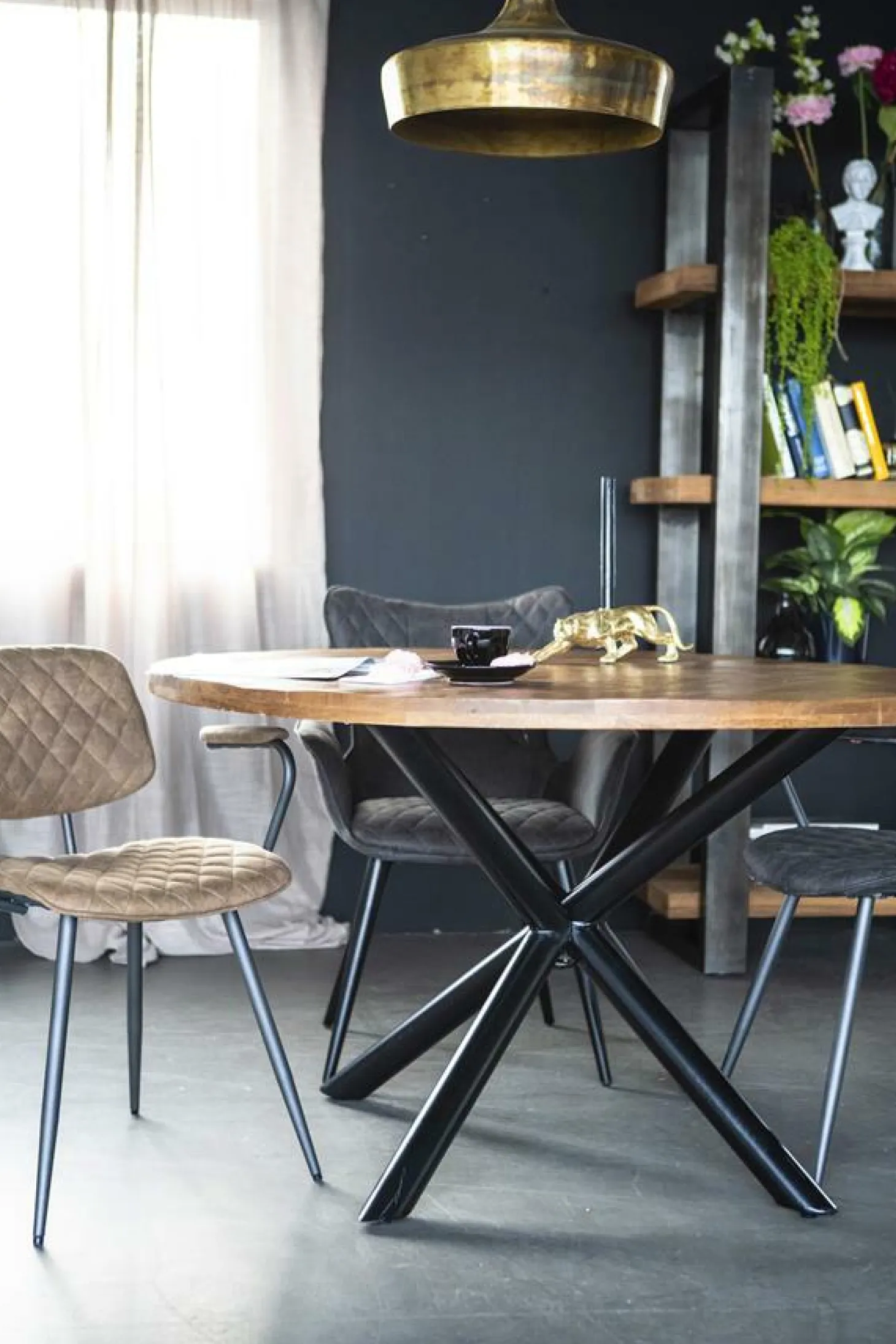 Dit is de eettafel Oscar rond met kruispoot van Eleonora. De eettafel is gemaakt van mangohout en heeft een metalen frame in de vorm van een kruis. De tafel heeft door zijn kruispoot en industriele look alles in zich voor een echte eyecatcher. Rond maakt hem ook nog eens super praktisch in kleinere eetkamers en maakt een etentje net wat knusser.