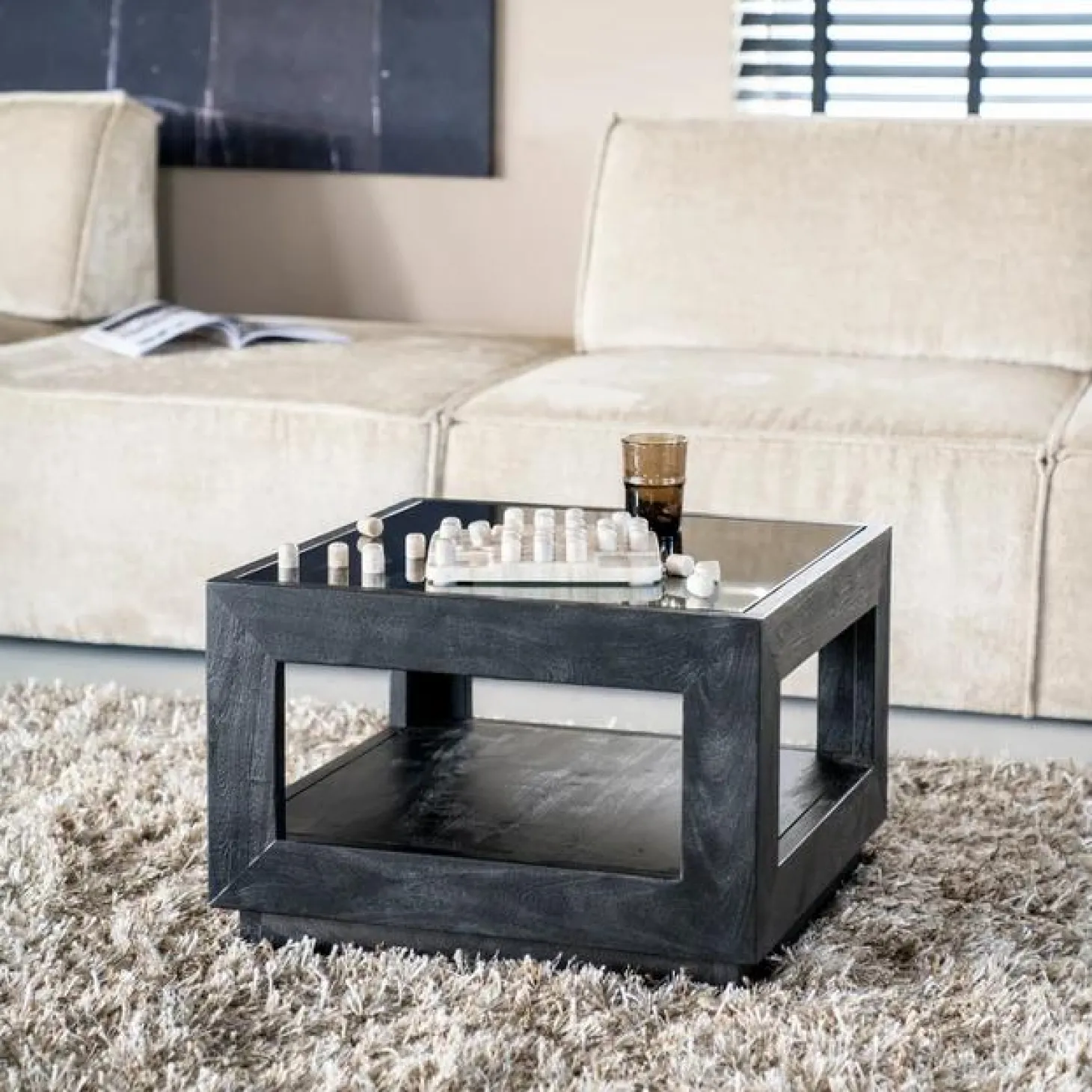 Bestel de Eleonora Salontafel Liam Mangohout en Glas – Zwart online en ontvang de Salontafel Liam dezelfde week in huis.