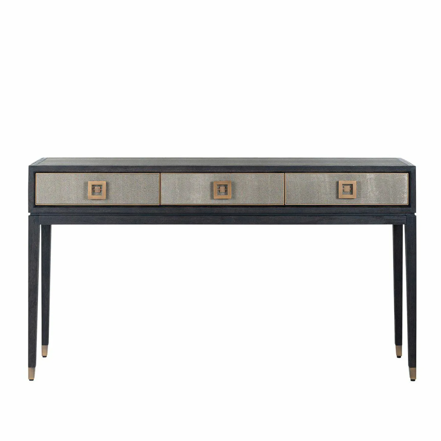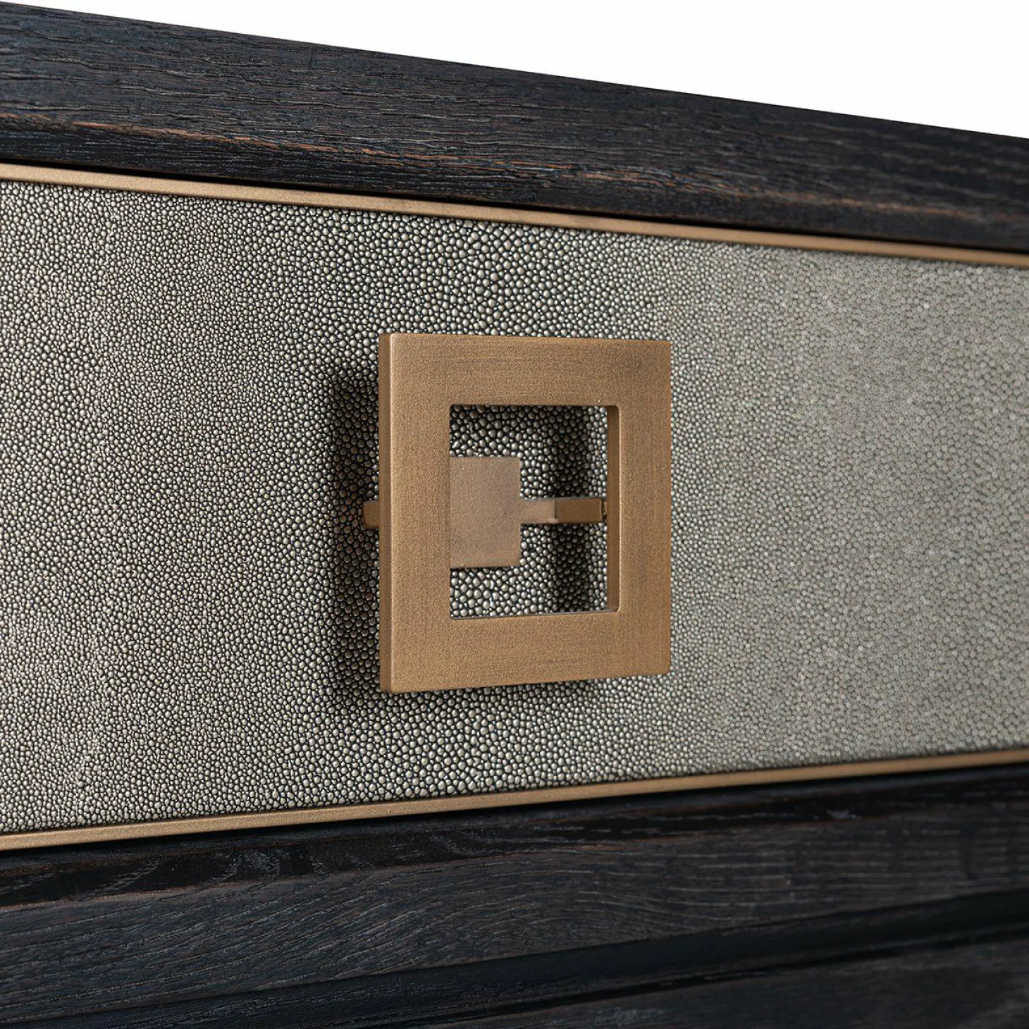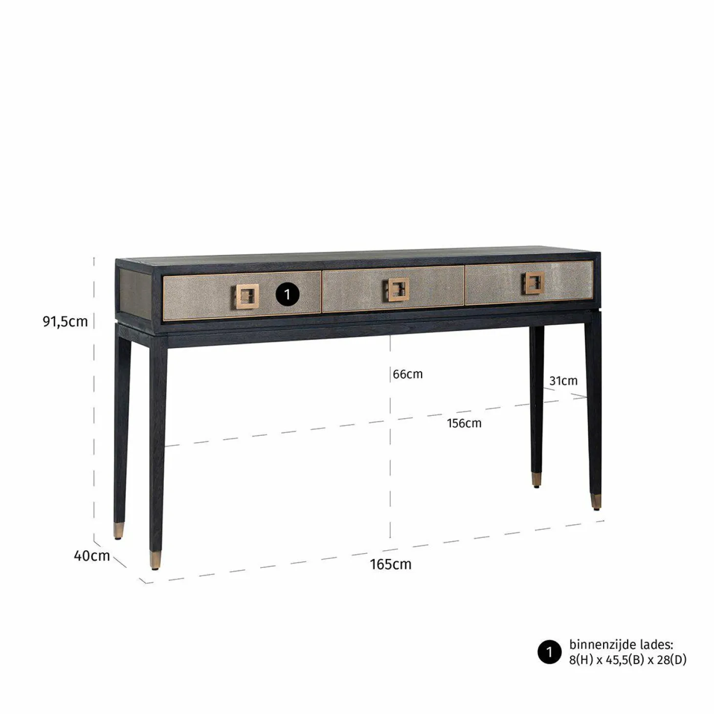 | Materiaal | segrijn/faux roggehuid van PU leder en mat gouden metalen accenten, Zwart eiken blad en poten |