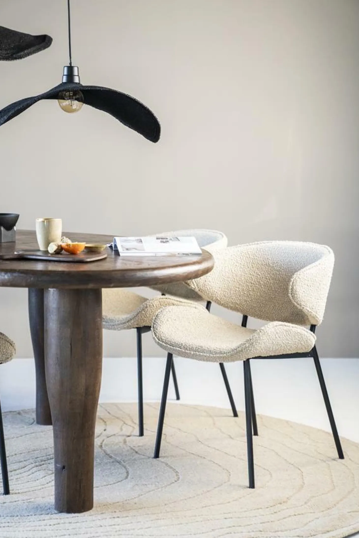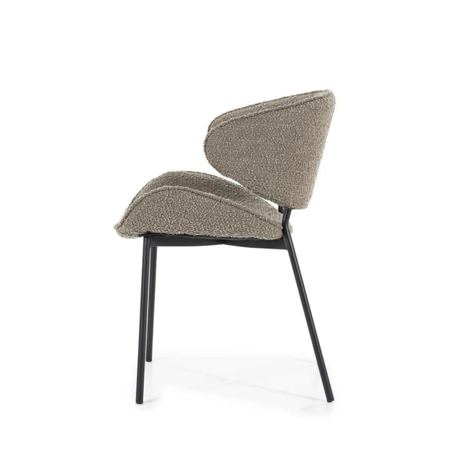 Stoel Tess is nieuw in de collectie van Eleonora. De eetkamerstoel Tess heeft een Scandinavisch uiterlijk dankzij haar ergonomische vormen in combinatie met de Spark bouclé stof.