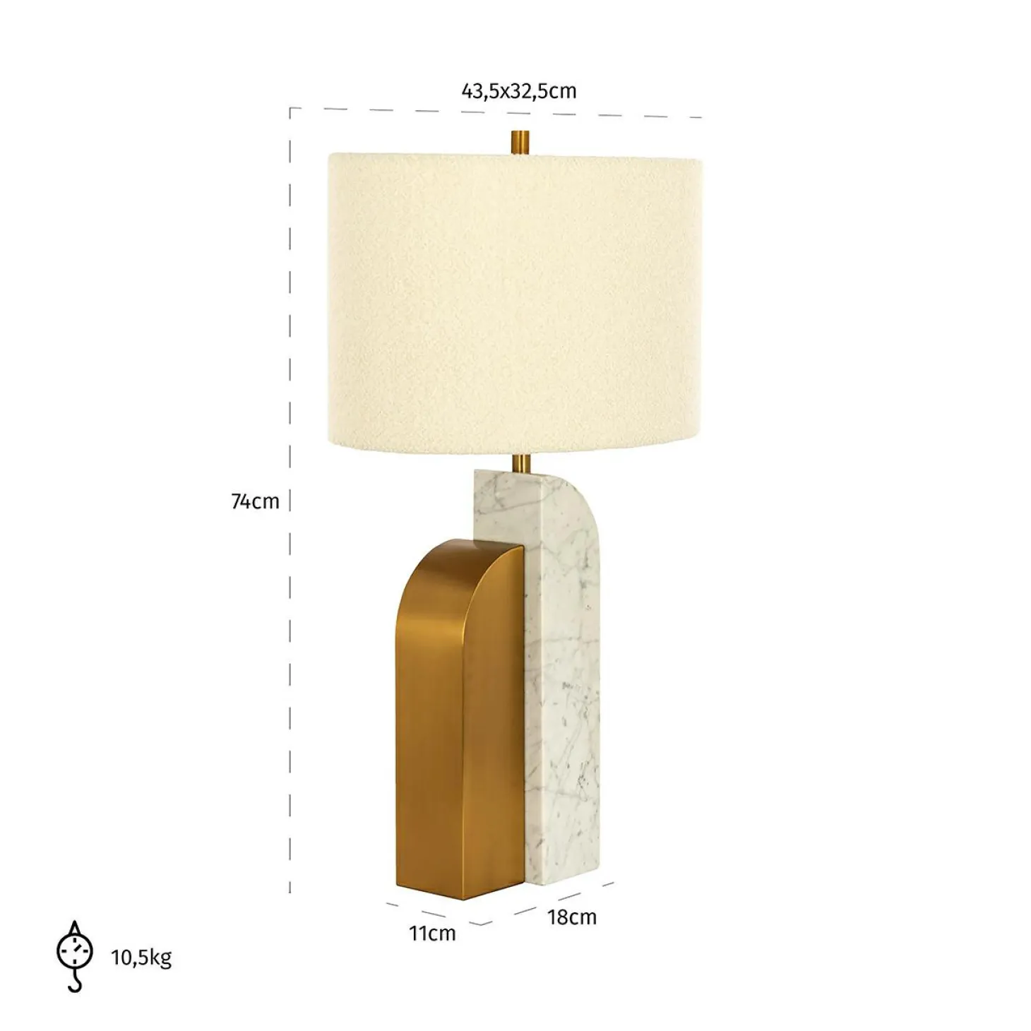 | Materiaal | Metalen en marmeren voet en bouclé kap |