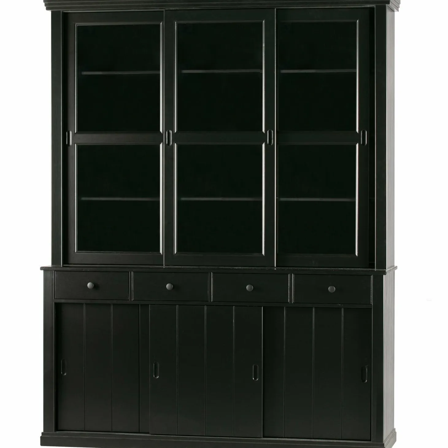 Ontdek de Vitrinekast Lagos in DiepZwart, een meesterwerk van WOOOD dat jouw interieur naar een hoger niveau tilt. Stel je voor: een avond thuis, omringd door de warme uitstraling van massief grenenhout, terwijl je favoriete servies en decoraties schitteren achter de glazen schuifdeuren. Deze kast is niet zomaar een meubelstuk; het is een statement.