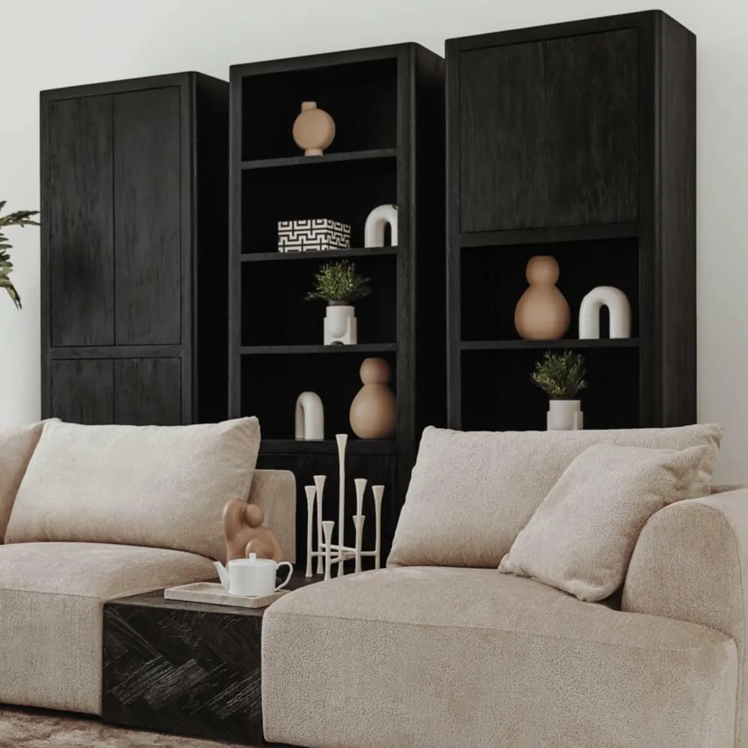 | Materiaal | Massief geborsteld mangohout afgewerkt in zwarte kleur |