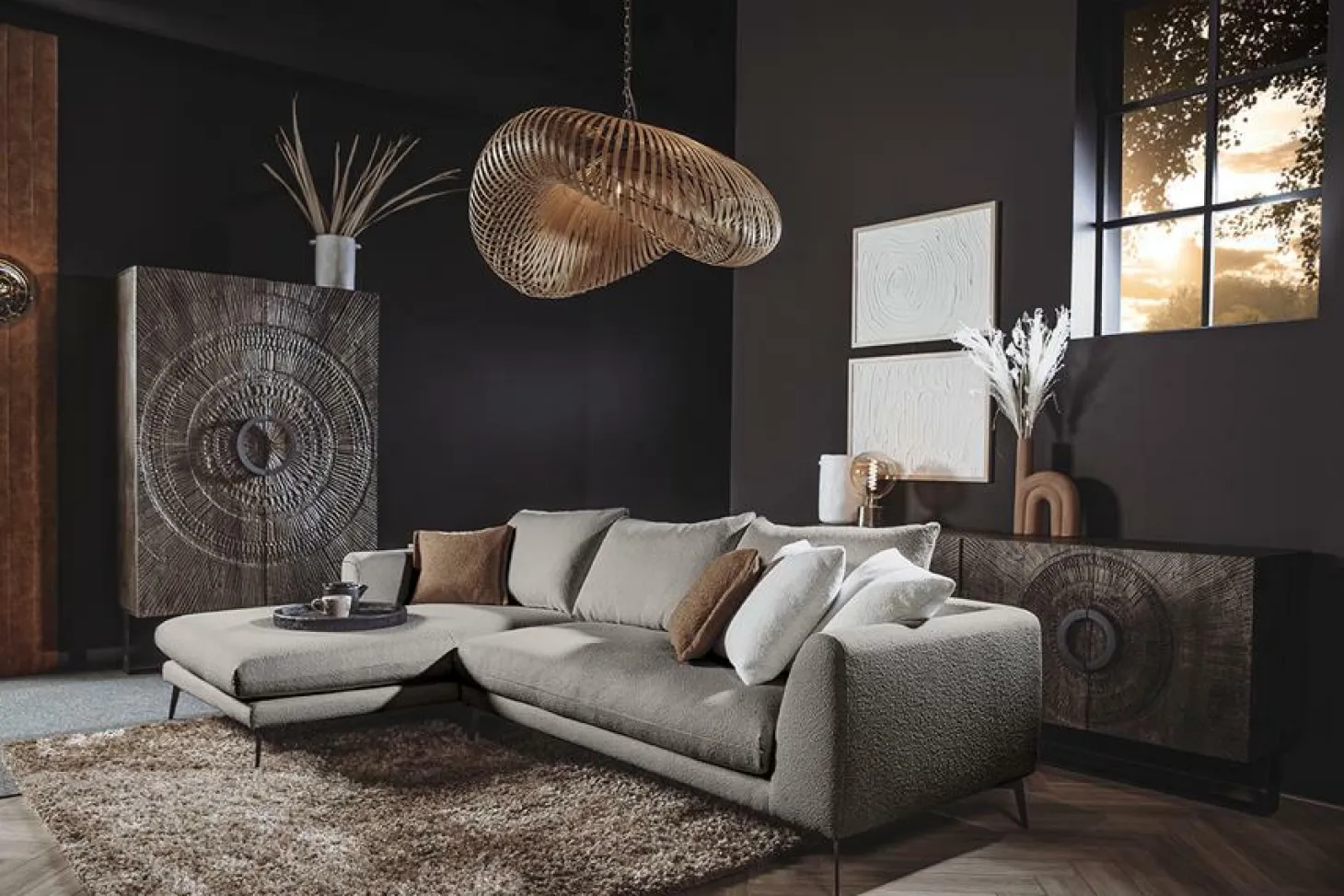 | Materiaal | Bekleed met Copenhagen stof en gevuld met HR-foam en donsveren |