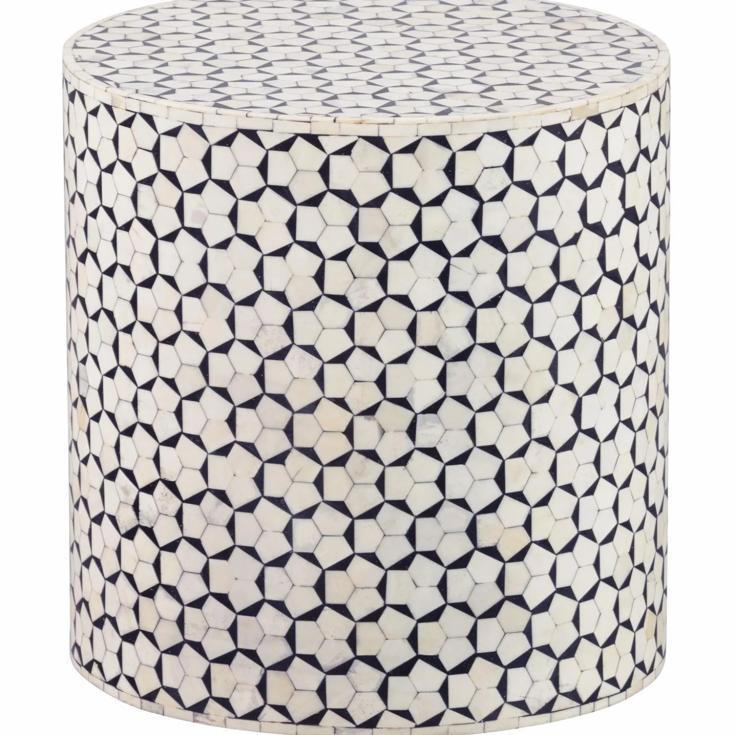 Stel je voor: je komt thuis na een lange dag, ploft neer op de bank en je oog valt op de Bijzettafel Neva. Een stijlvolle metgezel die je interieur net dat beetje extra geeft. Met zijn unieke combinatie van zwart en wit, en de prachtige bone inlay op mangohout, is deze tafel een echte blikvanger.