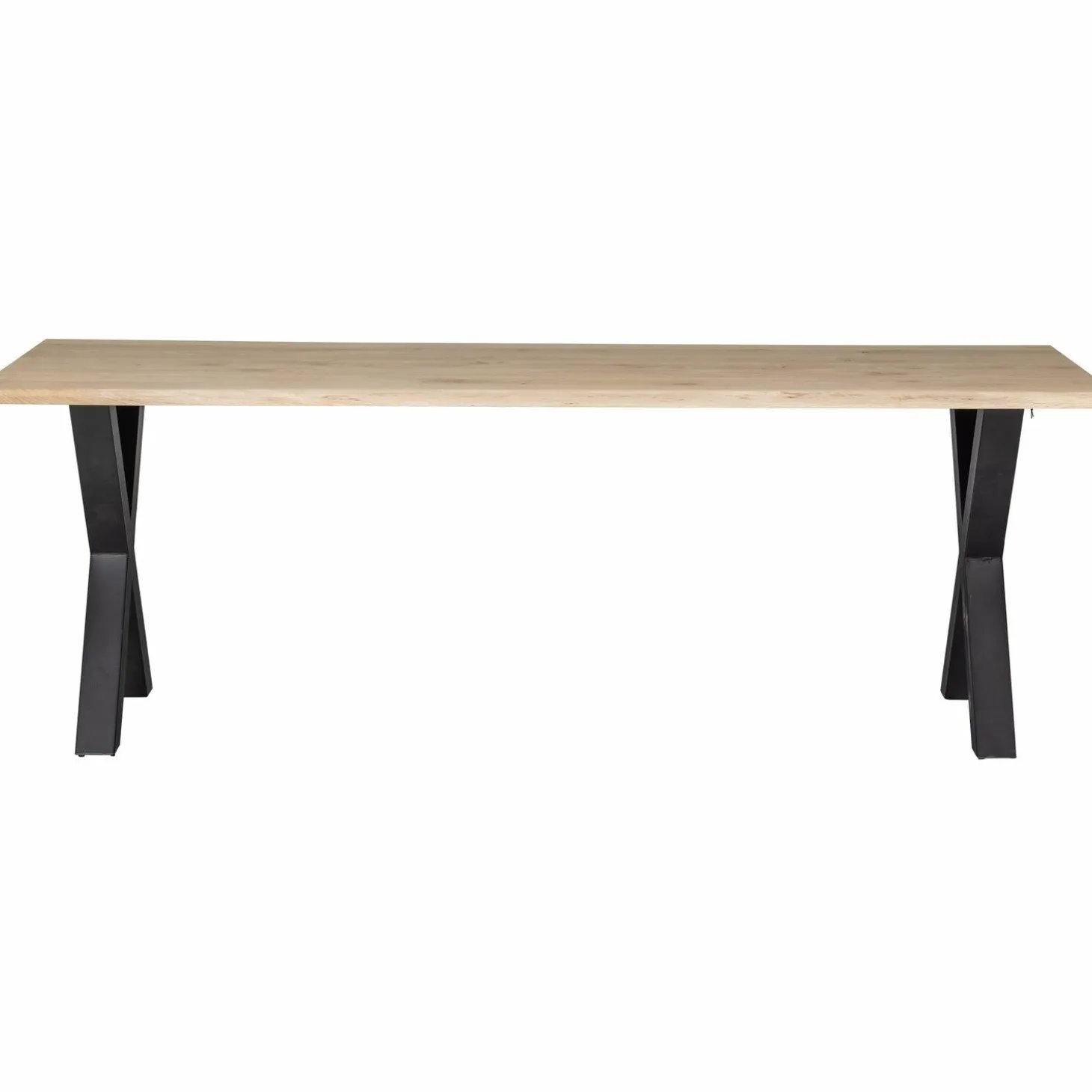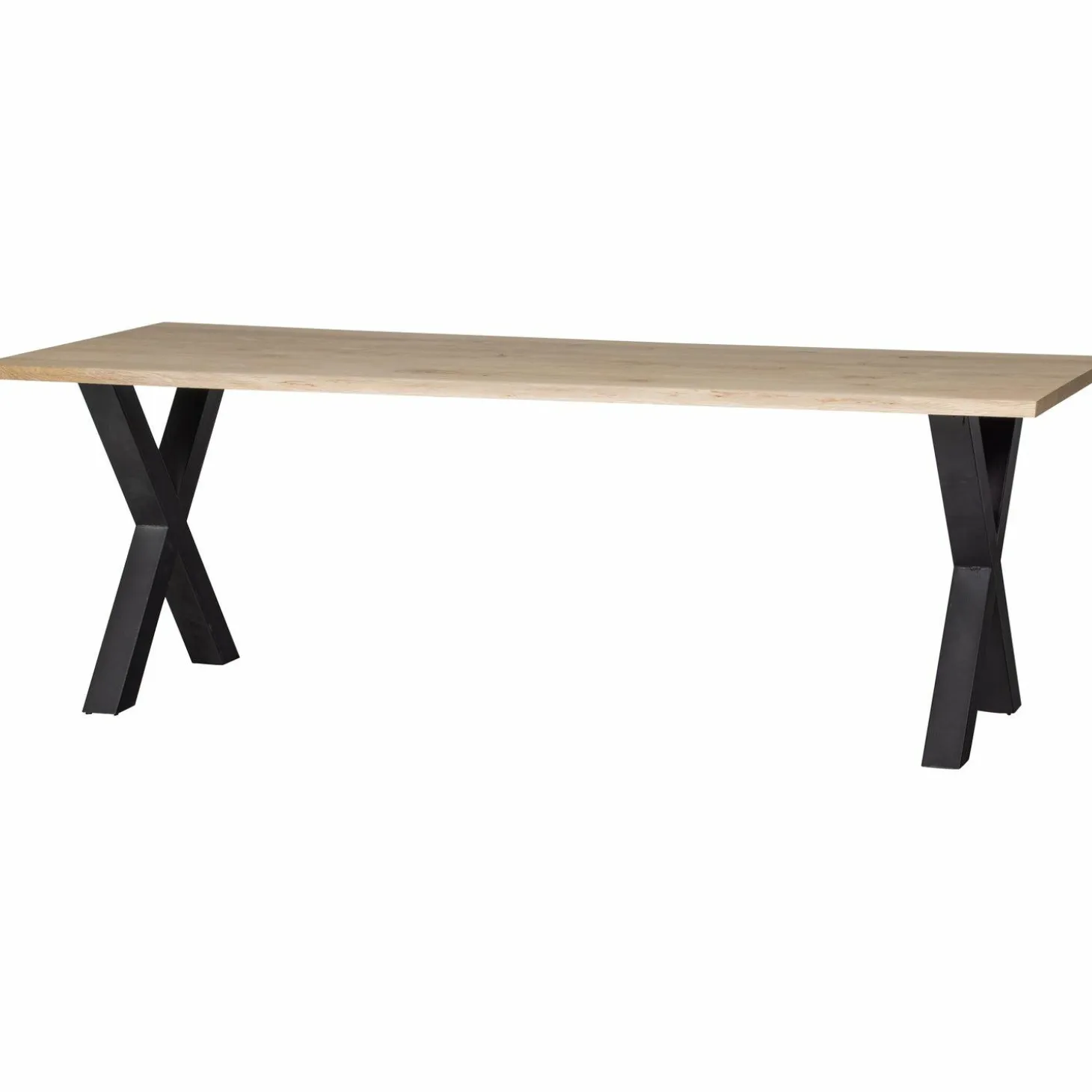 Met zijn royale afmetingen van 220 cm lang en 90 cm breed, biedt de Tablo genoeg ruimte voor gezellige diners en lange gesprekken. De robuuste X-poten van mat zwart gepoedercoat metaal geven de tafel een stoere uitstraling en zorgen voor stabiliteit en duurzaamheid. Of je nu een modern interieur hebt of een landelijke stijl, deze tafel past zich moeiteloos aan en voegt een vleugje natuur toe aan je huis.
