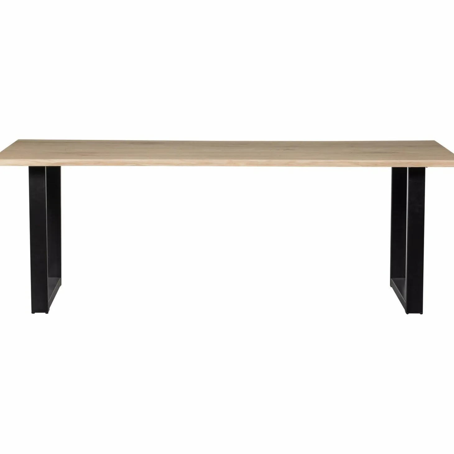 Met zijn robuuste metalen U-poten in mat zwart, biedt de Tablo niet alleen een stoer design, maar ook stabiliteit en duurzaamheid. De royale afmetingen van 220 cm lang en 90 cm breed maken het de perfecte plek voor gezellige diners of inspirerende werkplekken. De natuurlijke oneffenheden en noesten geven de tafel karakter en een authentieke uitstraling.