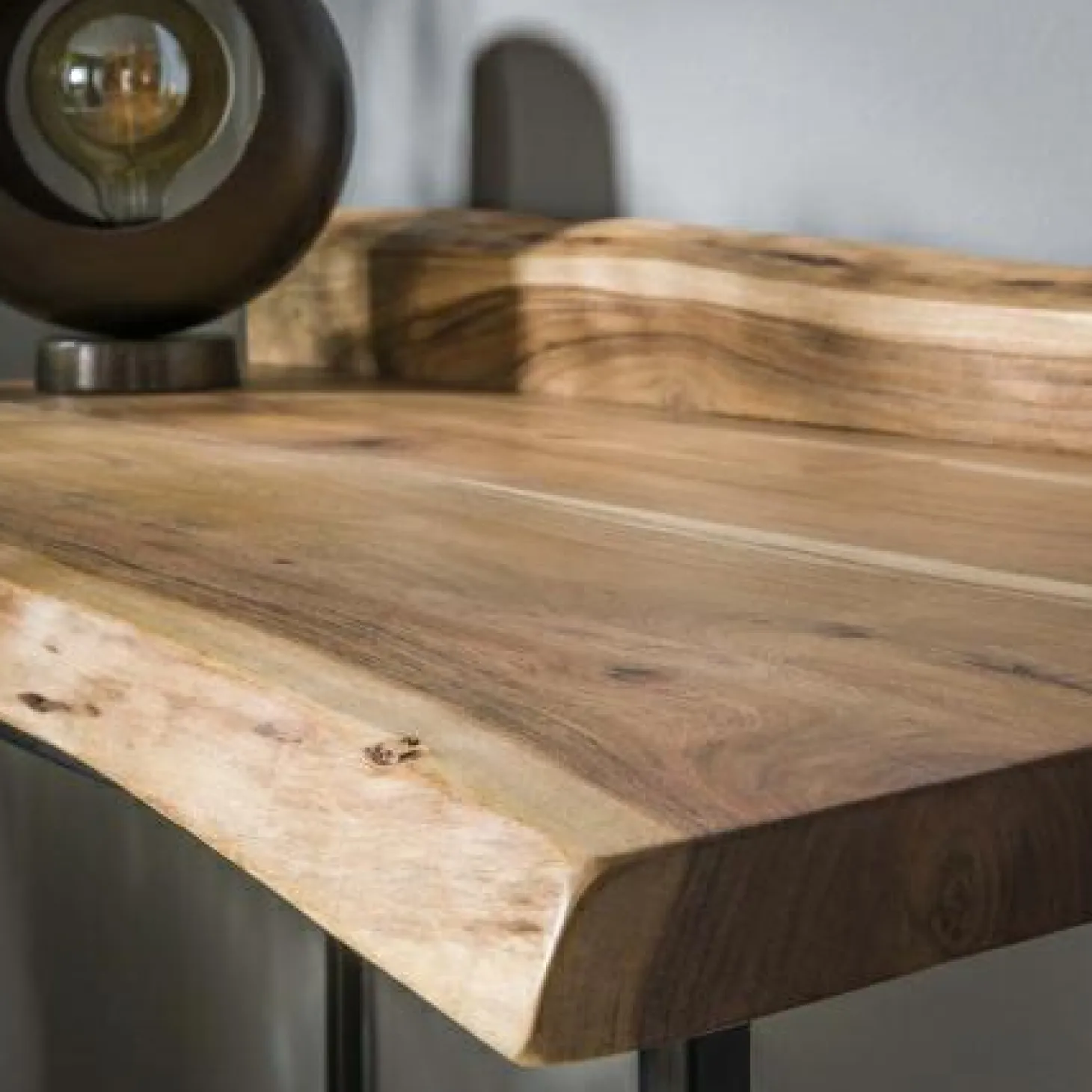 Dit bureau ‘edge’ is uitgevoerd in een acaciahout met een metalen frame. De prachtige boomstam-vorm maakt het bureau natuurlijk en robuust. Het metalen frame is netjes afgewerkt met een zwarte poedercoat finish. Met een bladdiepte van 60 cm kan er gemakkelijk een computer/laptop op staan en blijft er voldoende werkruimte over. Daarnaast kan dit bureau ook ingezet worden als kaptafel. Dit bureau maakt deel uit van de ‘edge’ serie.