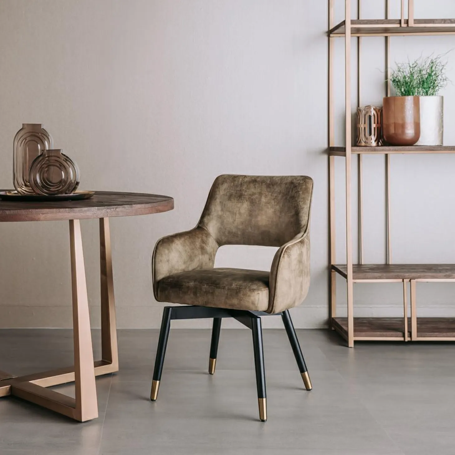 | Bijzonderheden | Bij deze stoel krijg je ook een set zwarte poten meegeleverd, zodat je kunt kiezen tussen een gouden of zwarte look. 180 graden draaibaar |
