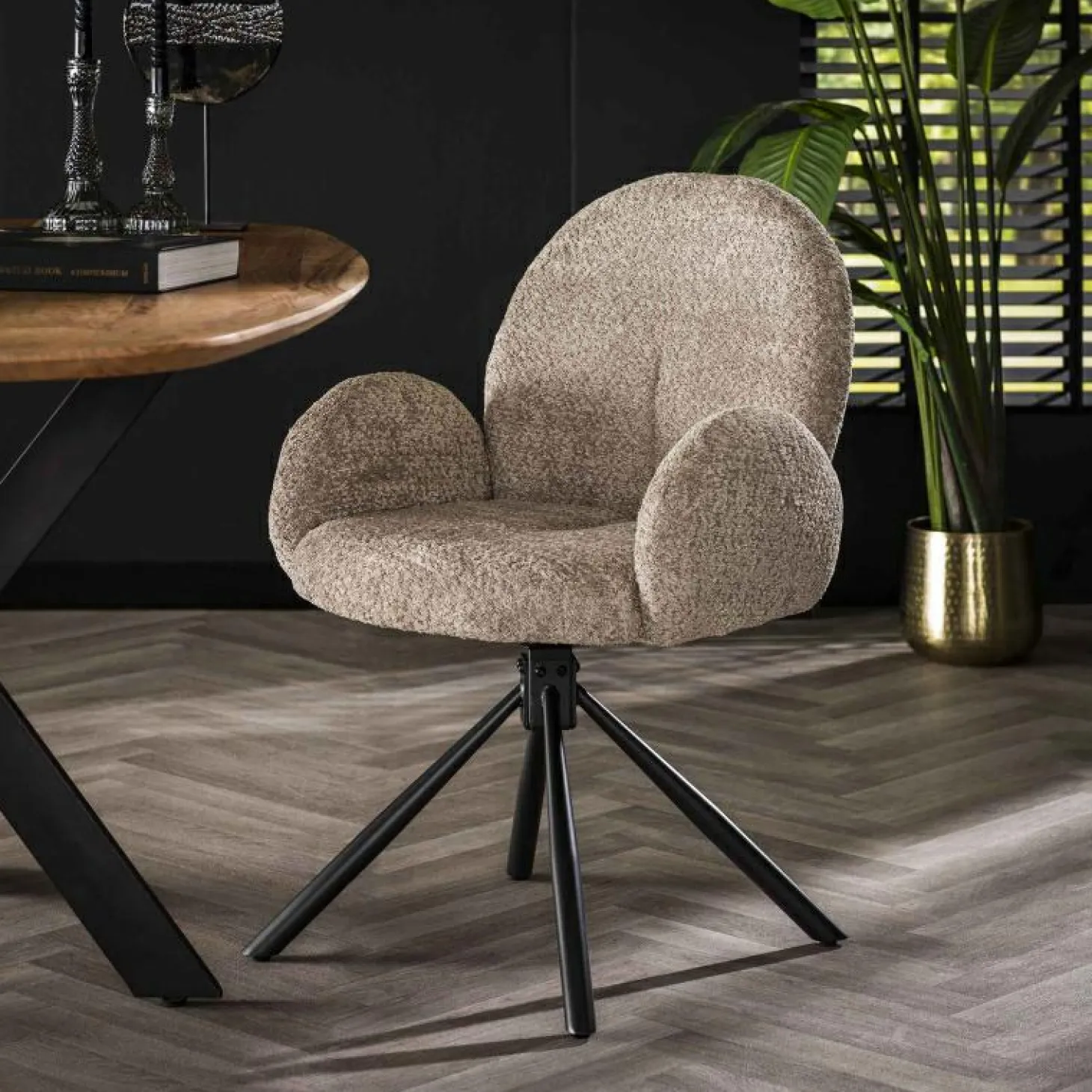 Loft24 Draaibare Eetkamerstoel Rondo – Bouclé Zand