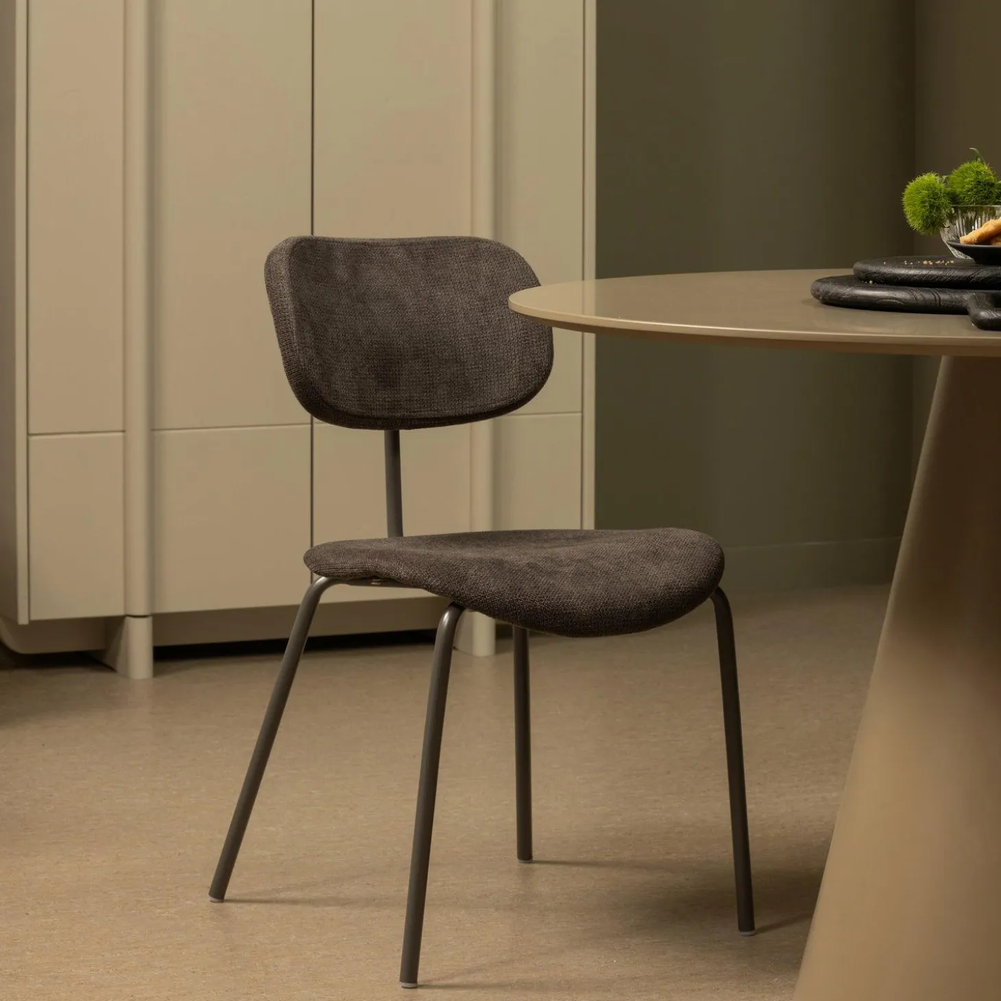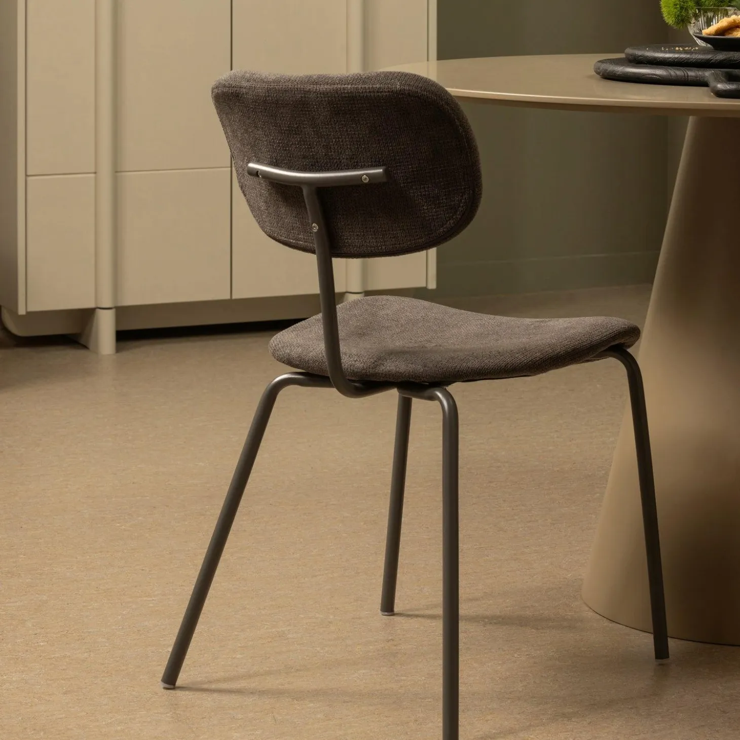 Ontdek de charme van de Eetkamerstoel Link Chenille in Bruin/Grijs, waar comfort en stijl samenkomen in jouw eetkamer. Deze stoel is niet zomaar een zitplek; het is een uitnodiging om te genieten van lange, gezellige diners met vrienden en familie.
