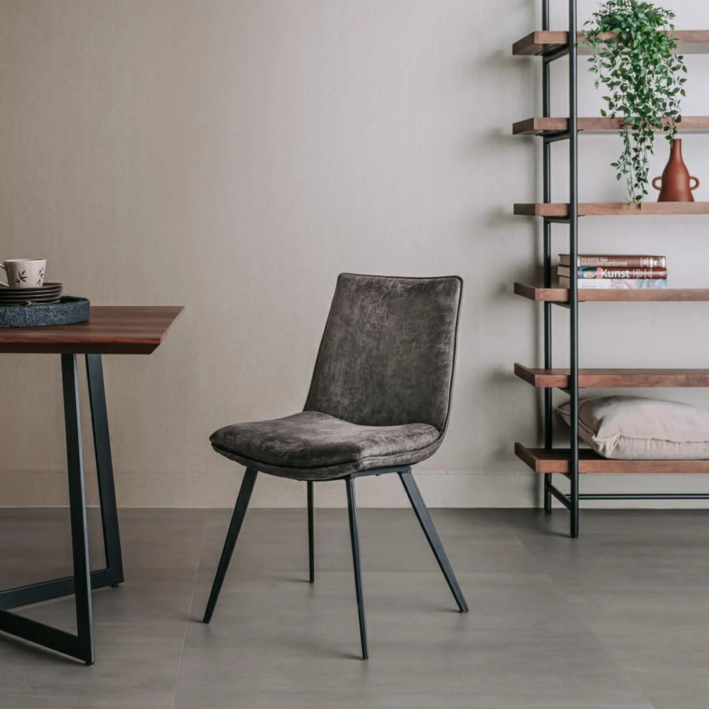 | Materiaal | Metalen onderstel, zitting bekleed met suedelook-textiel |