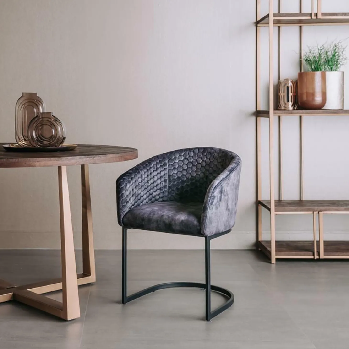 | Materiaal | Velvet stoffen zitting en gepoedercoat stalen onderstel |