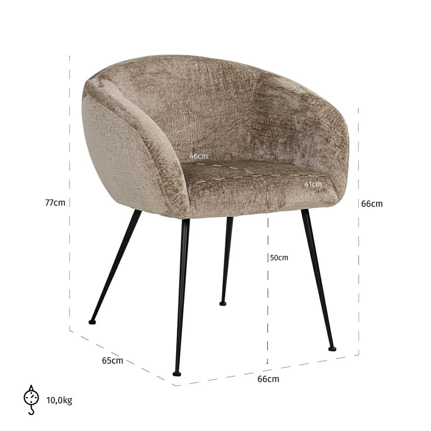 | Materiaal | Chenille bekleding en metalen poten |