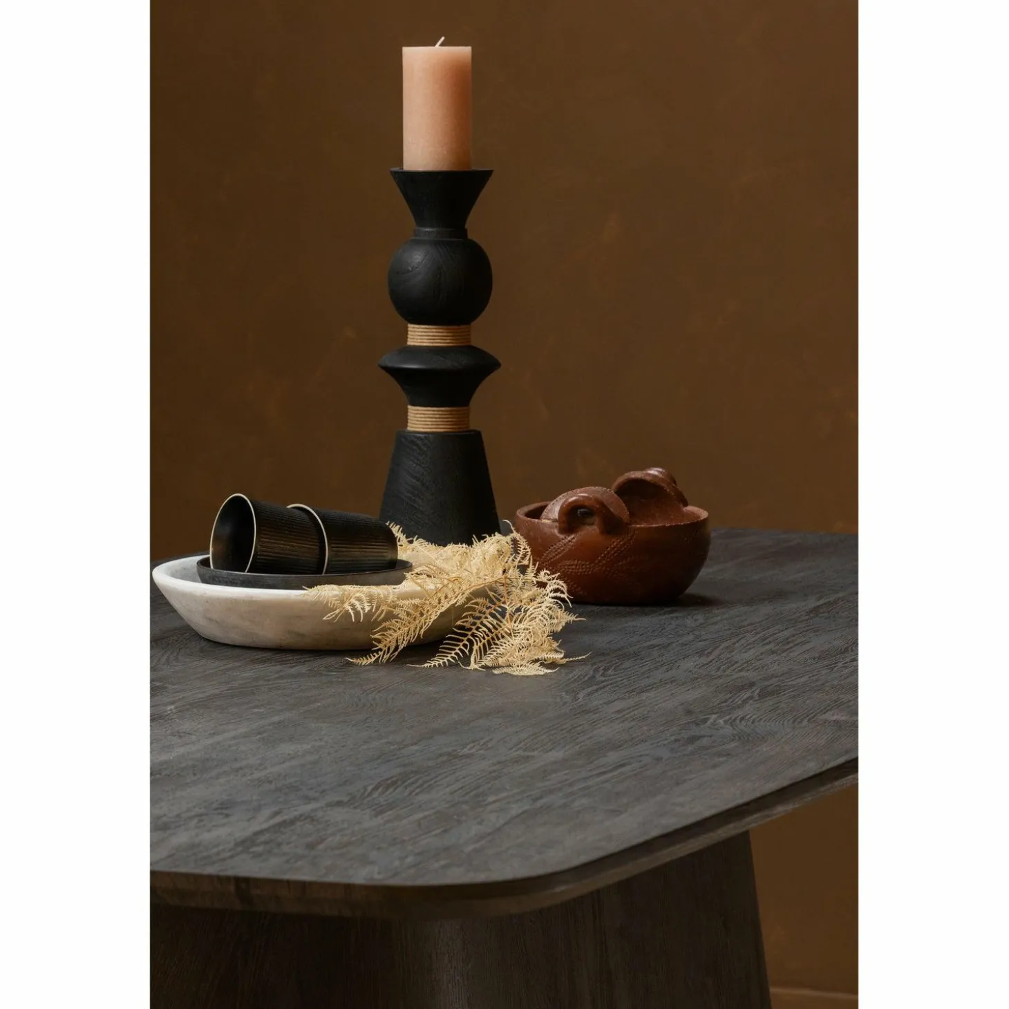 Gemaakt van hoogwaardig MDF met een verfijnde donkerbruine afwerking, straalt deze tafel een tijdloze elegantie uit. Het gladde oppervlak en het strakke design maken Leah een veelzijdige keuze die moeiteloos in elke interieurstijl past, van modern tot klassiek. De stevige constructie zorgt ervoor dat je jarenlang kunt genieten van dit pronkstuk, zonder je zorgen te maken over versplinteren of kromtrekken.
