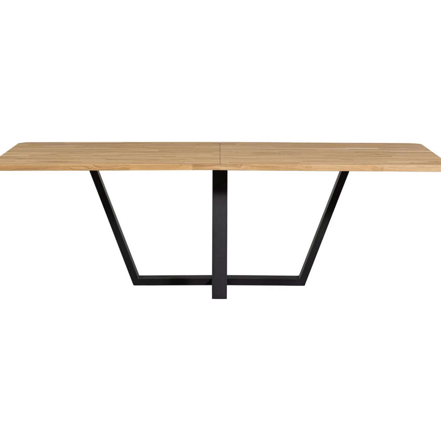 Het eikenhout, met zijn karakteristieke nerftekening, is niet alleen een lust voor het oog, maar ook duurzaam en FSC-gecertificeerd. Het metalen onderstel met poedercoating voegt een vleugje luxe toe en beschermt tegen slijtage. Of je nu een intiem diner organiseert of een groot gezelschap ontvangt, deze tafel is jouw betrouwbare partner.