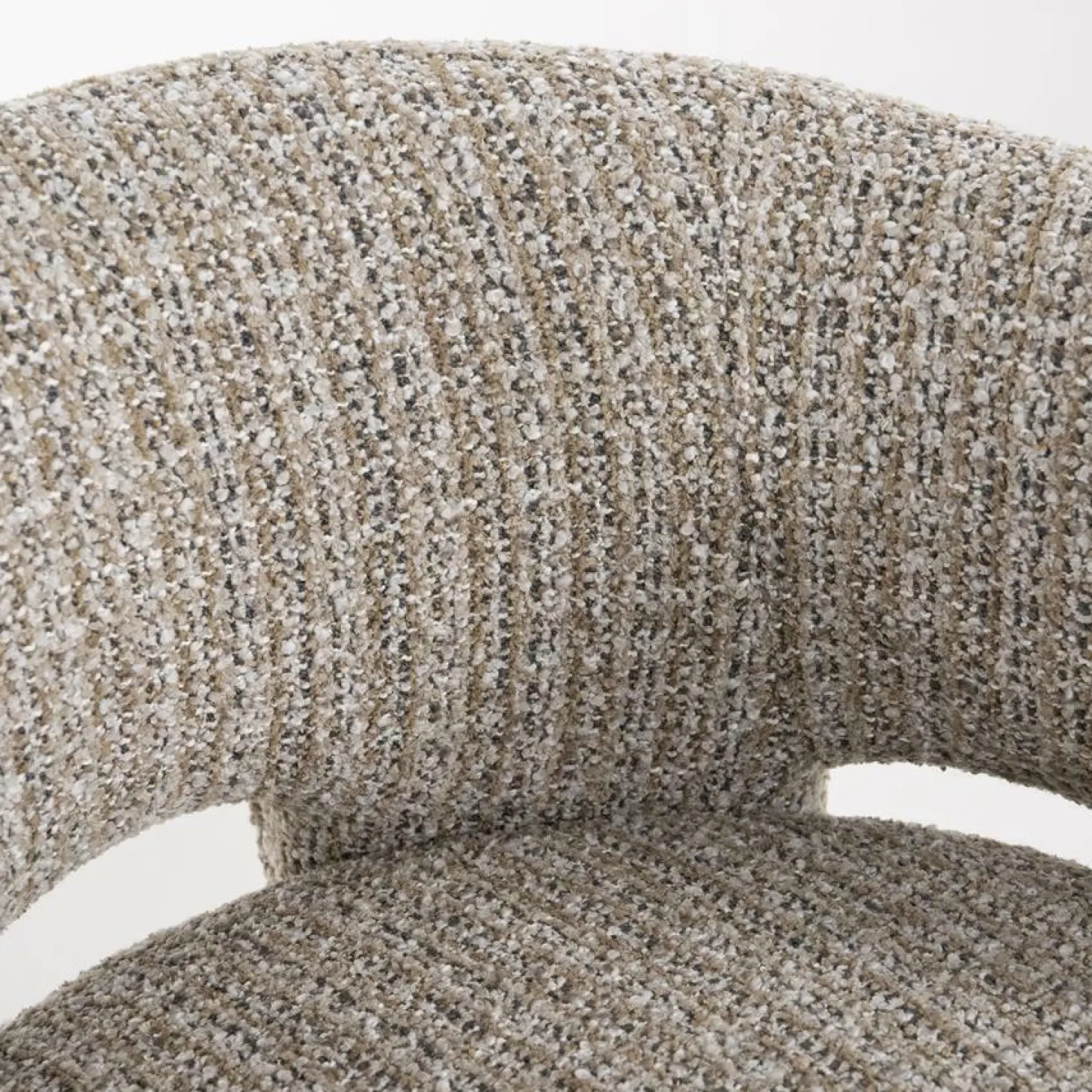 De fauteuil Hamilton van Eleonora is uitgevoerd grove bouclé bekleding en verkrijgbaar in de kleuren Taupe en Beige.