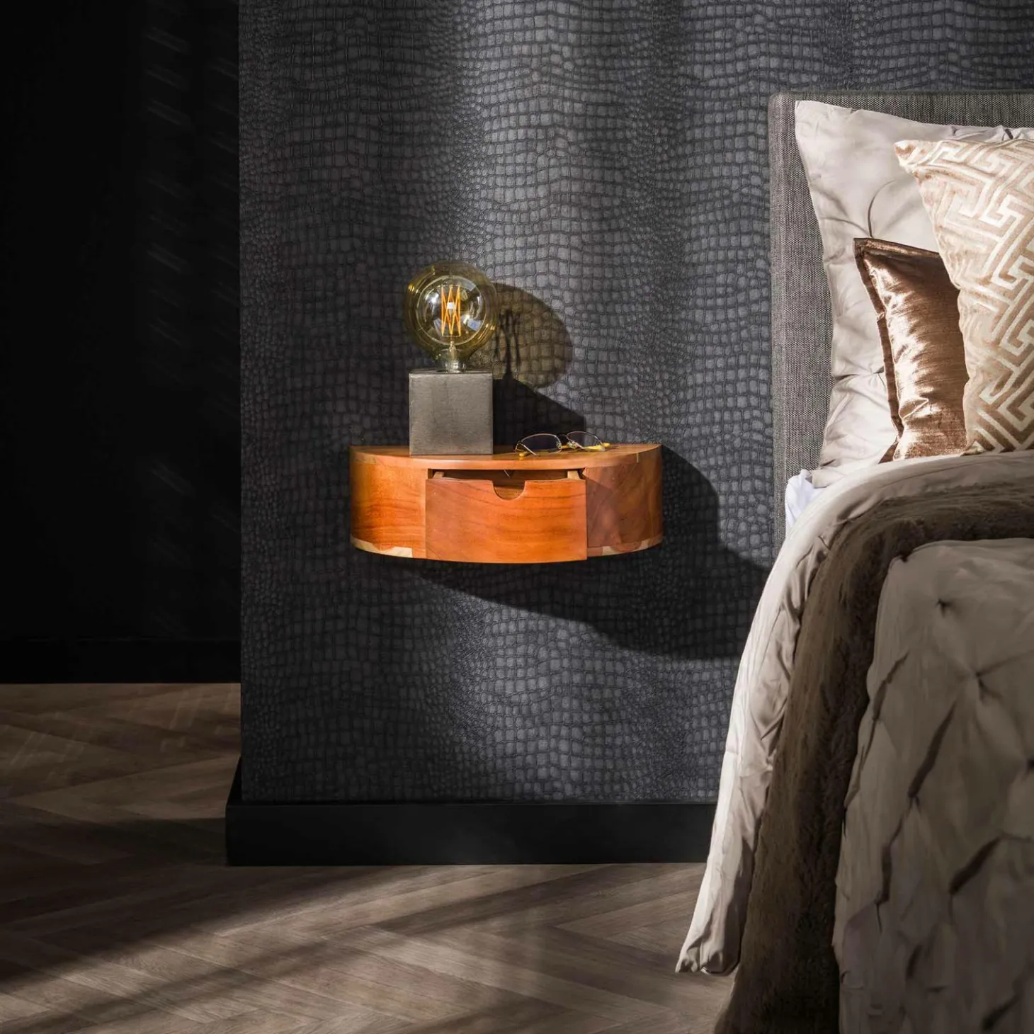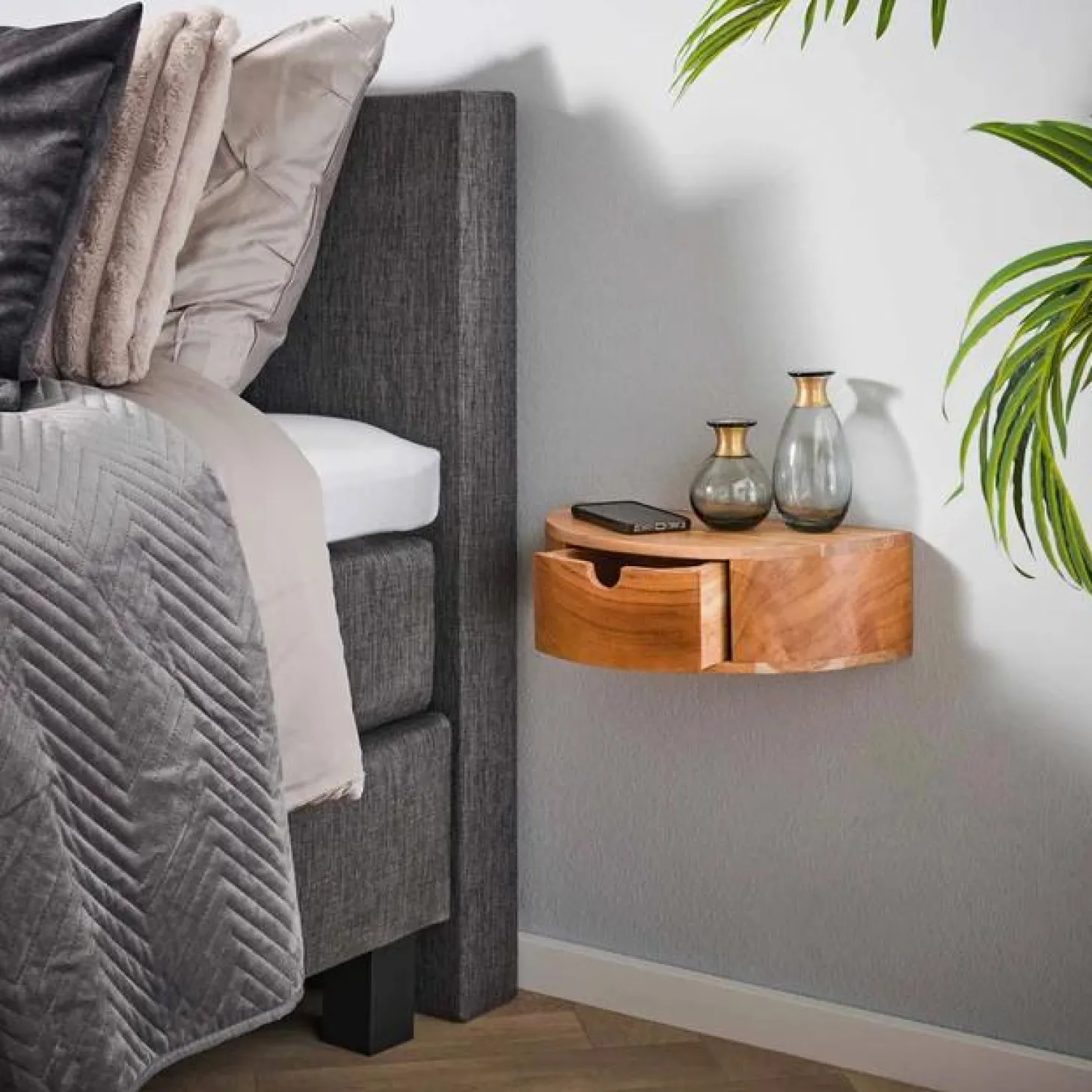 Loft24 Hangend Nachtkastje Curve Acaciahout met 1 lade