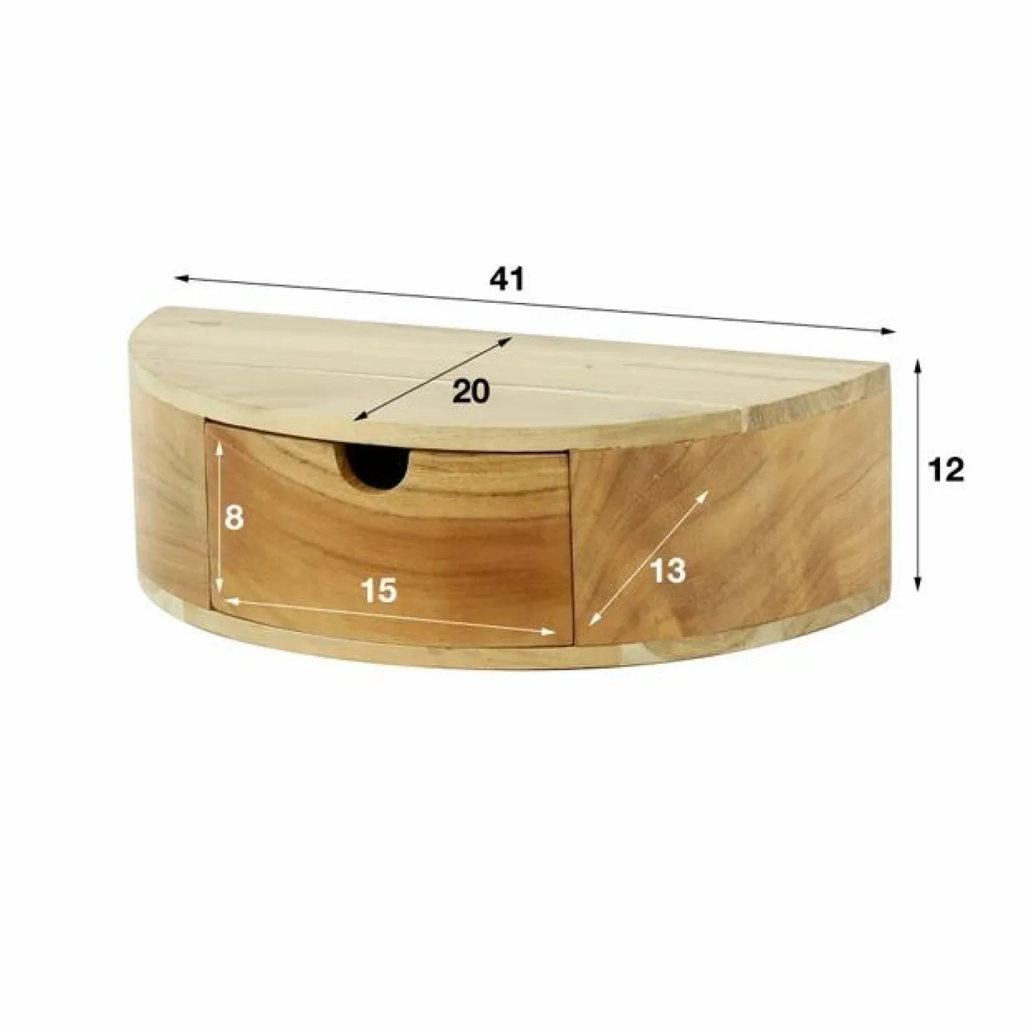 Dit nachtkastje ‘curve’ is uitgevoerd in acacia hout met een lade en een schapje. Het nachtkastje wordt door middel van een metalen wandstrip aan de wand gemonteerd. Zie hiervoor de afbeelding.