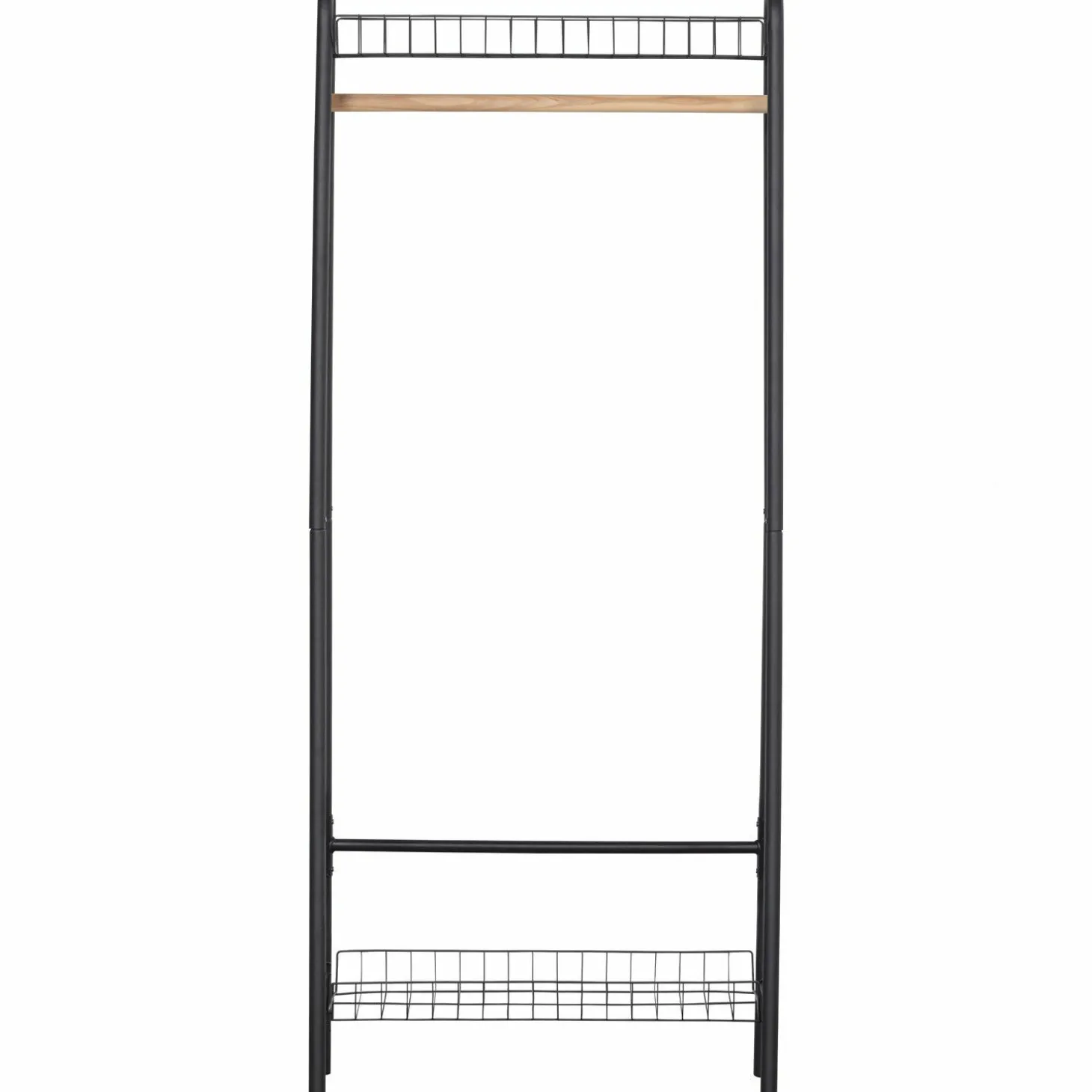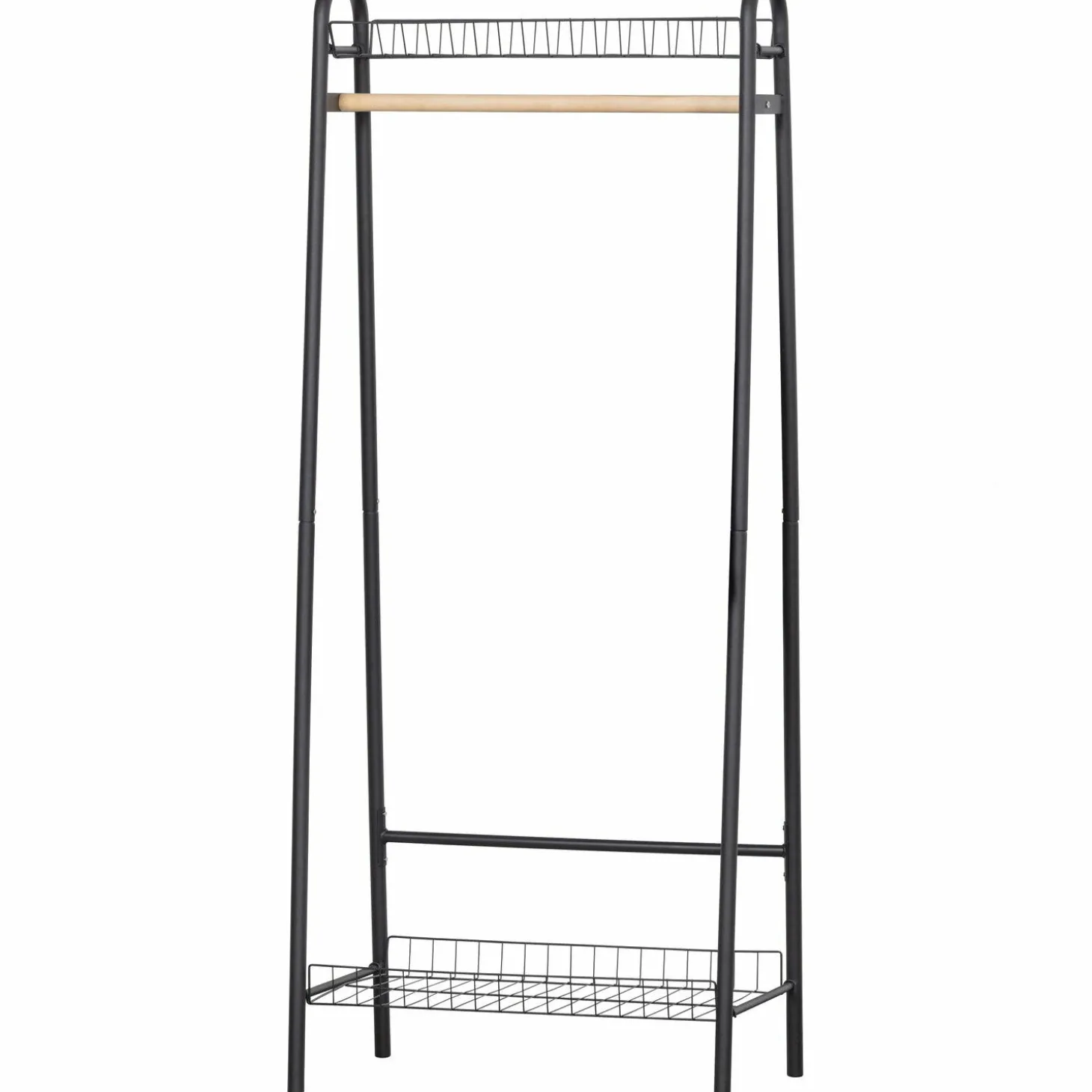 Met een hoogte van 167 cm en een breedte van 70 cm biedt Jovi voldoende ruimte om je favoriete kledingstukken netjes op te hangen. De twee draadstalen legplanken zorgen voor extra opbergruimte, ideaal voor schoenen of accessoires. Het minimalistische design past moeiteloos in elke interieurstijl, van modern tot industrieel.