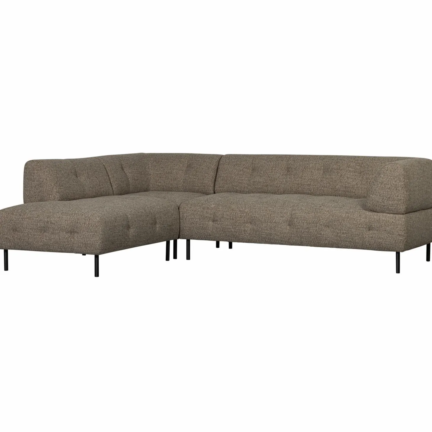 Ontsnap naar een wereld van comfort en stijl met de Lloyd hoekbank links in donkerbruin melange. Deze royale eyecatcher van WOOOD is de perfecte aanvulling voor jouw woonkamer. Met zijn strakke design en klassieke elementen, zoals de gecapitonneerde zitting, biedt de Lloyd een unieke mix van modern en tijdloos.