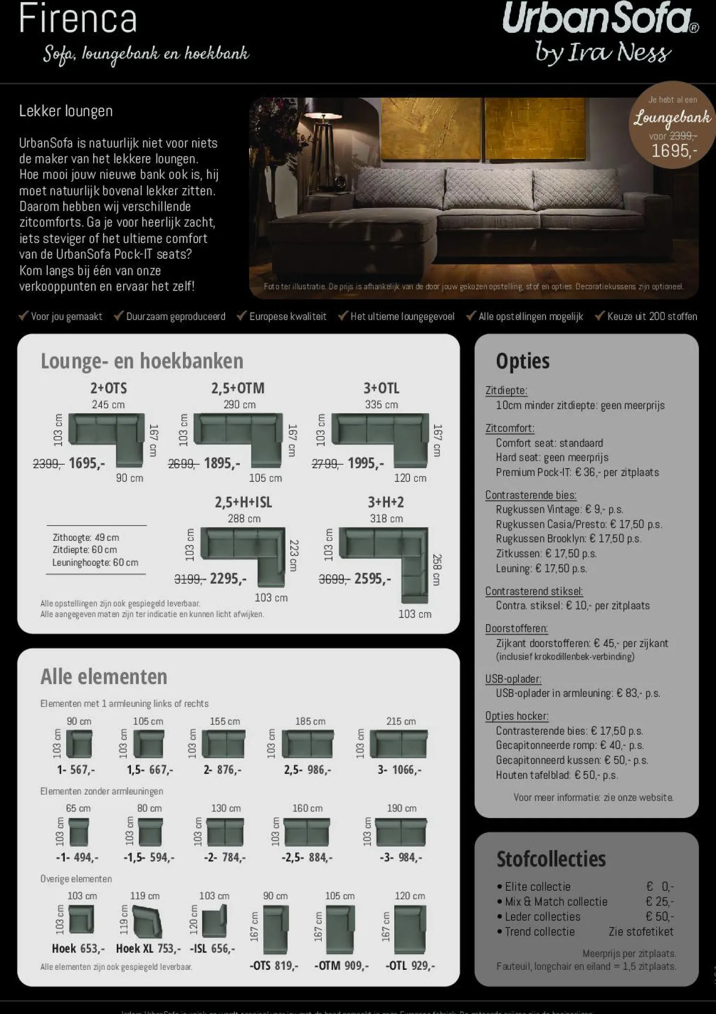 Modulaire Bank Firenca van UrbanSofa heeft de volgende opties: